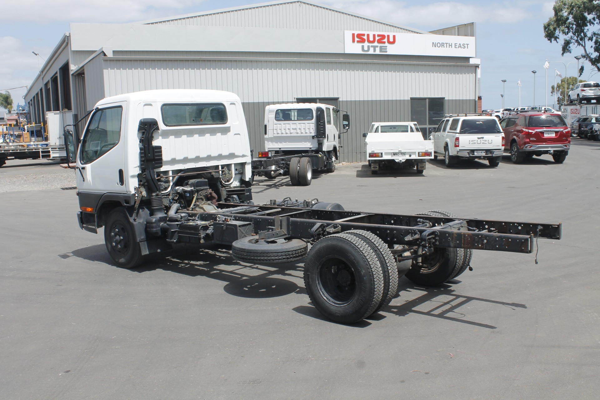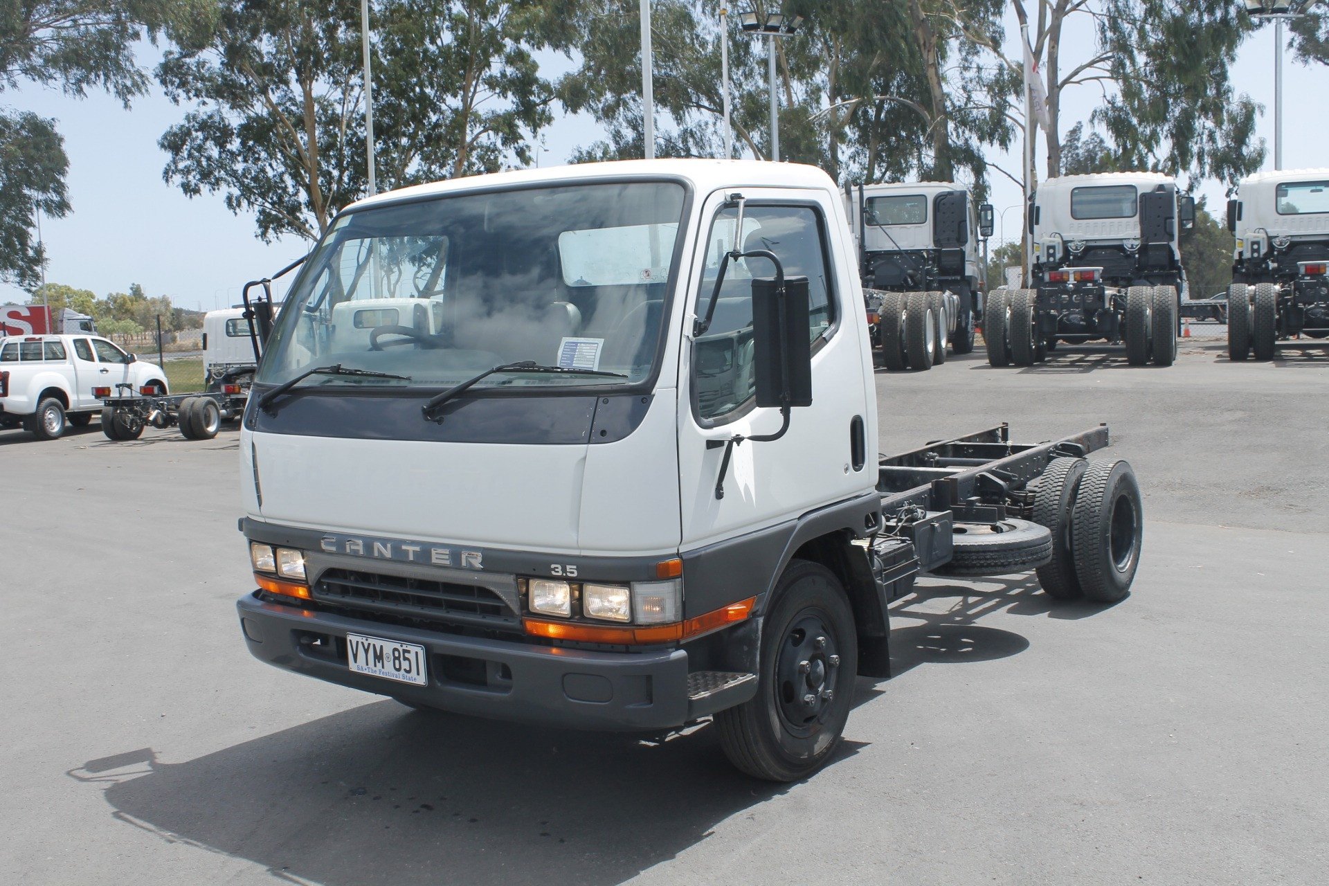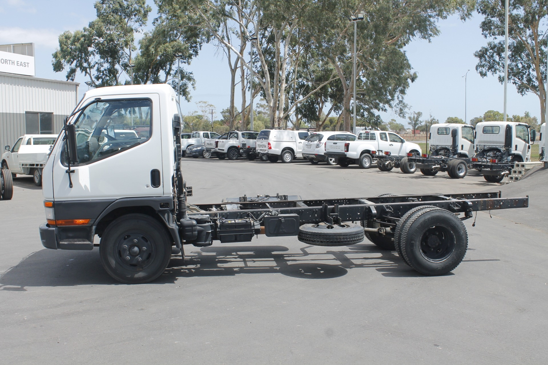 1997 Mitsubishi Canter Cab Chassis. 3.4 metre Wheelbase, 4.2 metre Chassis Rail, 4-Cylinder Turbo Diesel Engine, 5-Speed Manual Transmission. As Traded. Travelled 463,968 Kilometres.