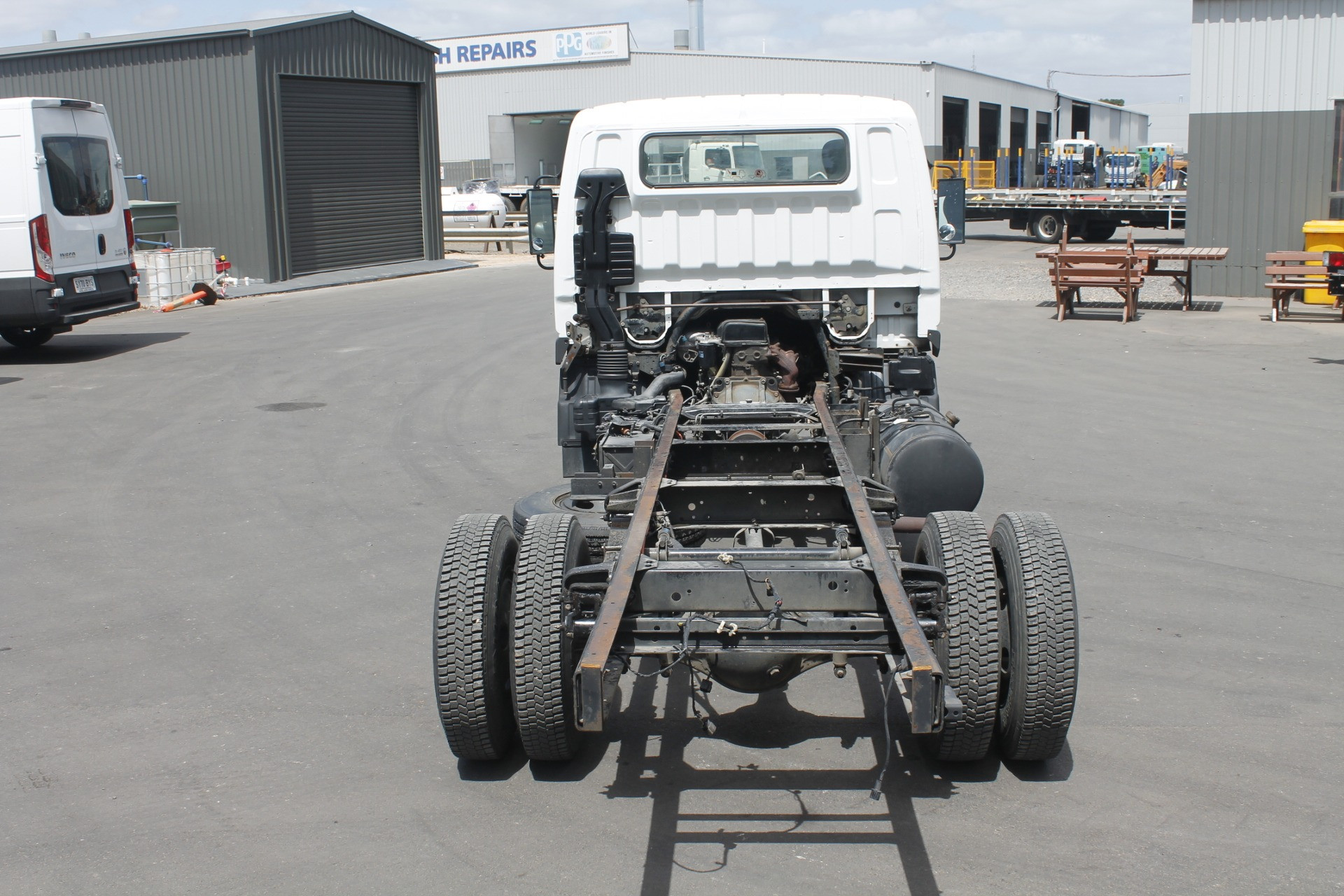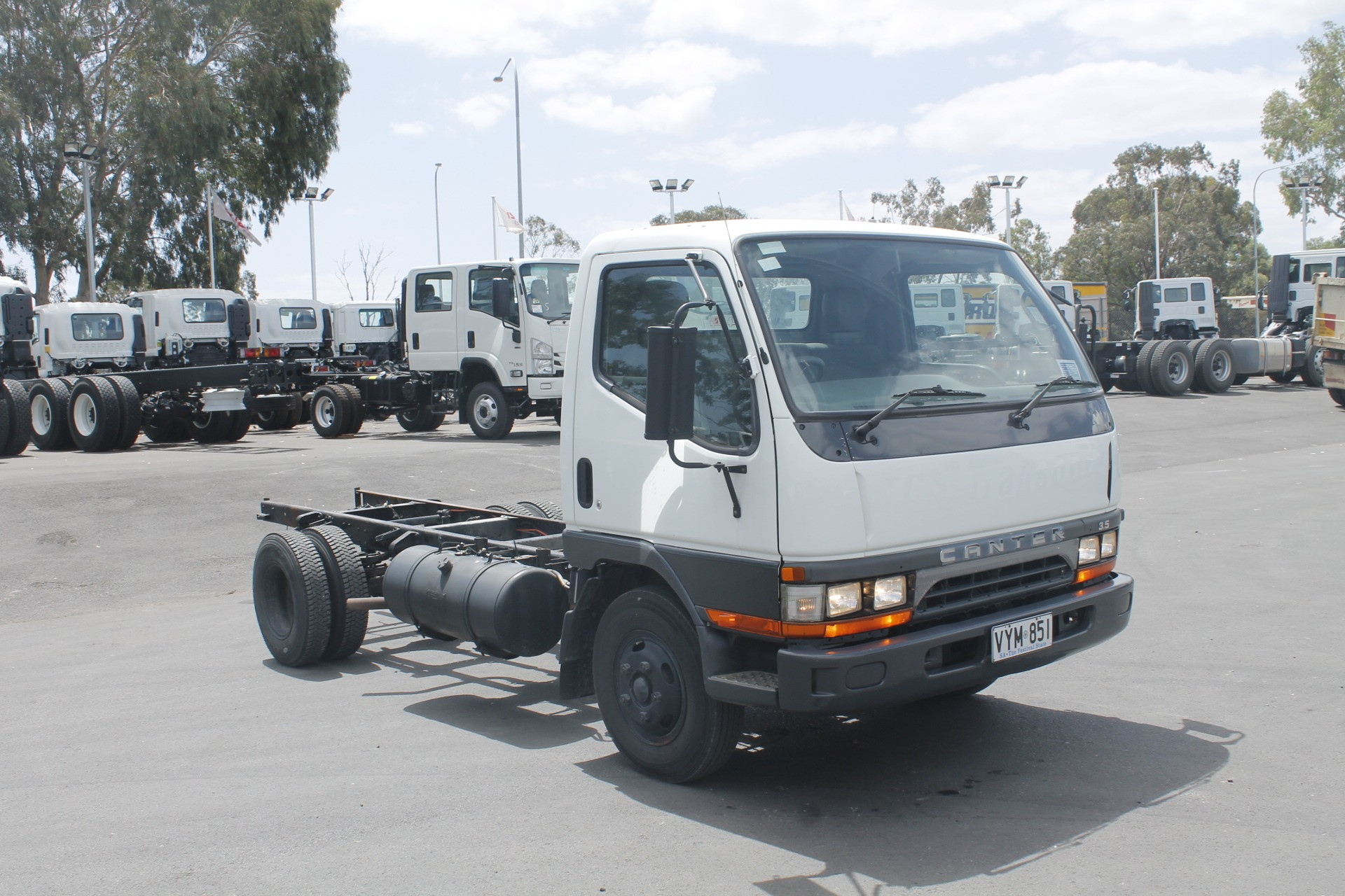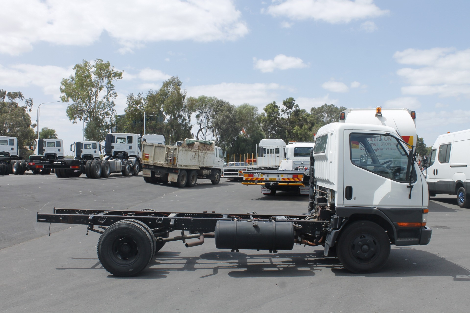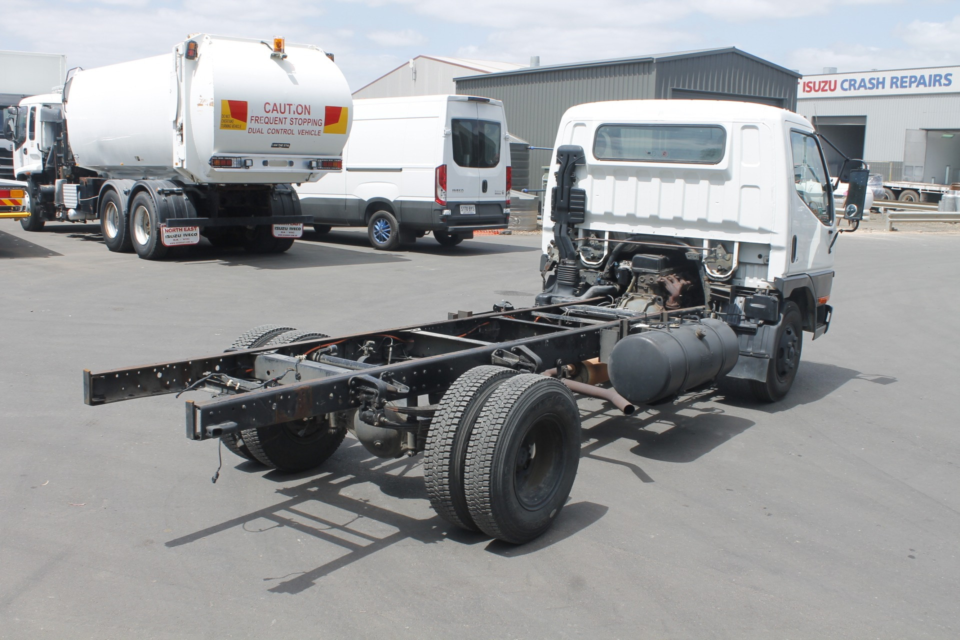 1997 Mitsubishi Canter Cab Chassis. 3.4 metre Wheelbase, 4.2 metre Chassis Rail, 4-Cylinder Turbo Diesel Engine, 5-Speed Manual Transmission. As Traded. Travelled 463,968 Kilometres.