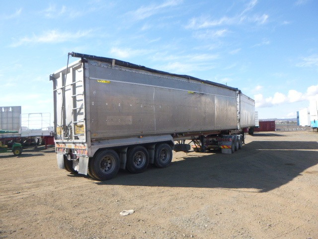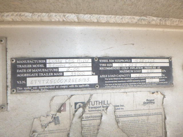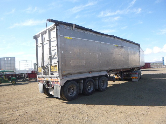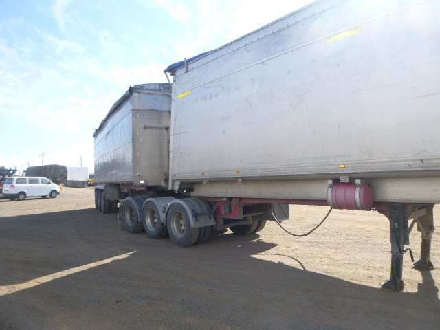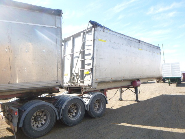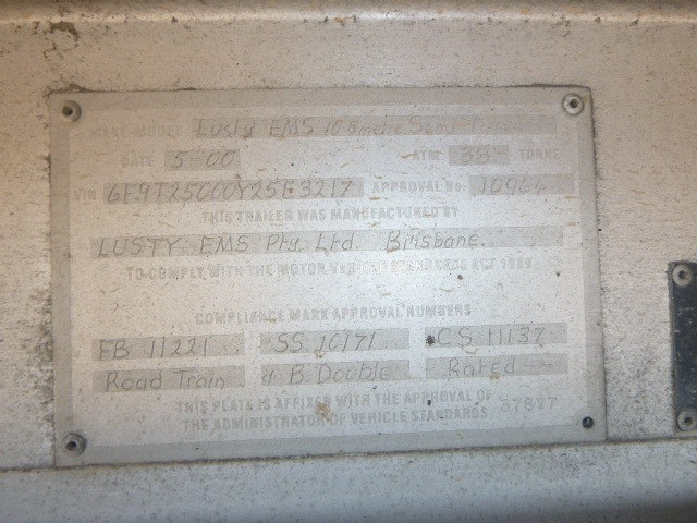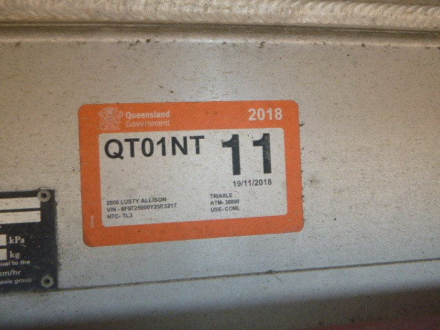 Stock ref # C3202 - 05/2000, Lusty Allison EMS, B Trailer, Triaxle, ATM: 38 Tonne, Length: 10.8m, Tyre Size: 11R22.5, B-Double & Road Train Plated, 2-Way Tail Gate, Roll Over Tarp, Grain Shute, LED Lights, Maxi-Brakes, Airbag Suspension, 10 Stud Rims. POA. Located at Western Traders Yard, Forest Hill QLD. Inspection prior to purchase is highly recommended.