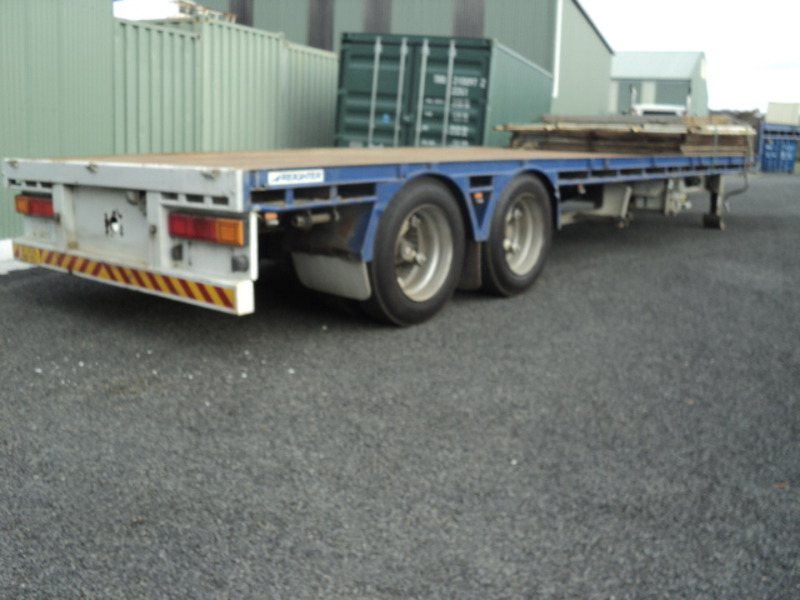 12/2002 FREIGHTER MAXITRANS BOGIE DROPDECK with 2 way pins and full set of gates, 12.3m long (40ft) x 2.5m wide,steel checker plate floor, 31000atm, air bag suspension,75% cleanskin 277/70r22.5 tyres on spider rims, 1 toolbox, dual tyre carrier, full set of steel gates,led lights all round, trailer is B double and roadtrain rated, 9.0m from king pin to centre of suspension, 1.24m from king pin to front of trailer, 2.1m from rear of trailer to centre of suspension, 3.67m top deck, 8.63m of bottom deck, 1.0m high bottom deck height, bolt in king pin, new brake shoes, drums, barings etc just fitted, nsw road worthy supplied.SN#1364