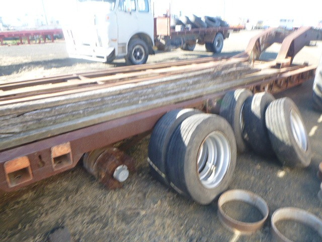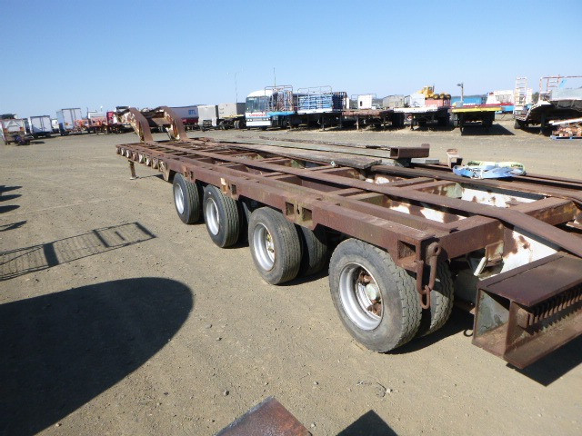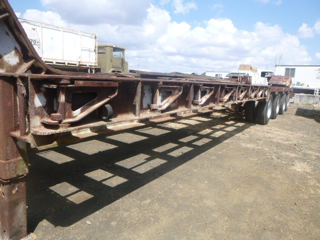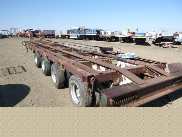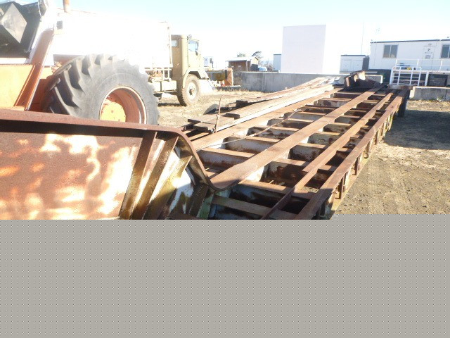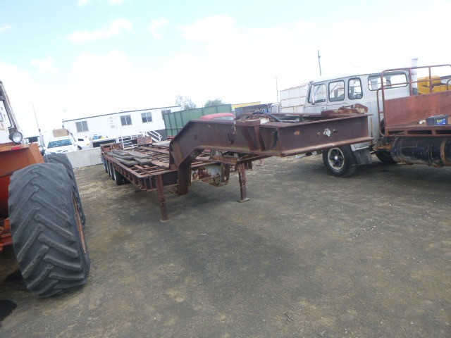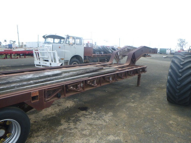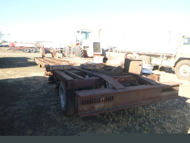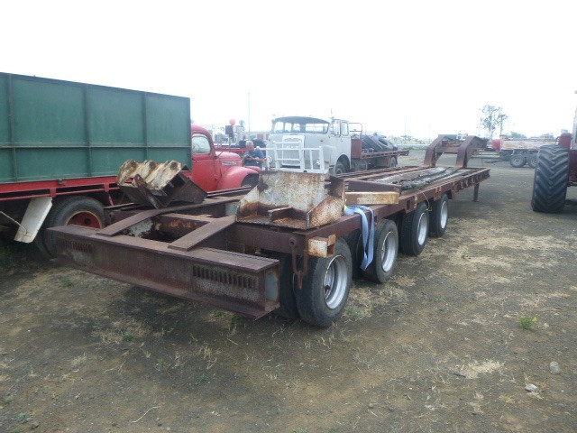 Stock Ref # 3032. 1972 Model unknown low loader. Tri-axle (no tyres). Spring suspension. Vendor asking $35,000. Located at Western Traders Yard, Forest Hill QLD. Inspection prior to purchase is highly recommended.