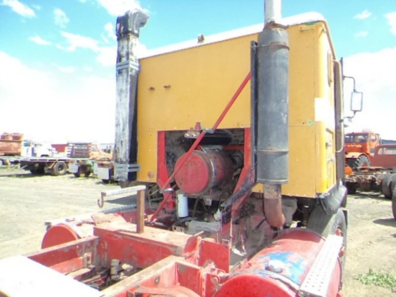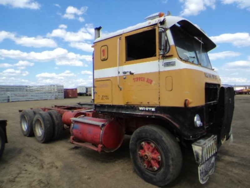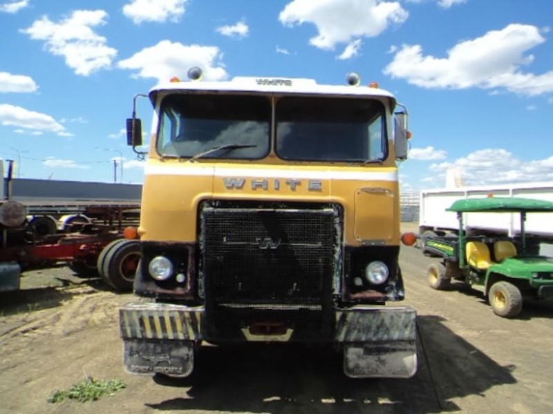 1976 White Road commander cab chassis. Spring suspension. 350 Cummins big cam. Engine runs. Stock ref # MD262. Located at Western Traders yard, Gatton.