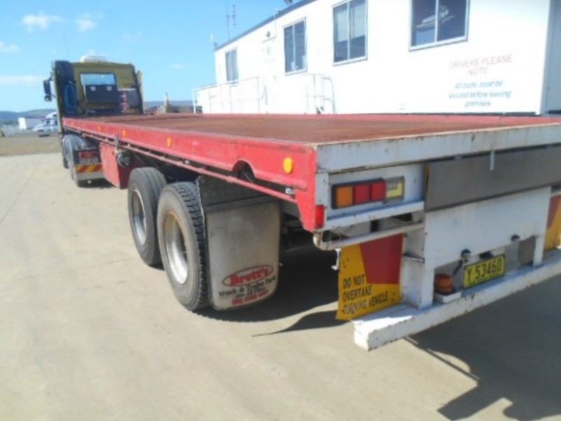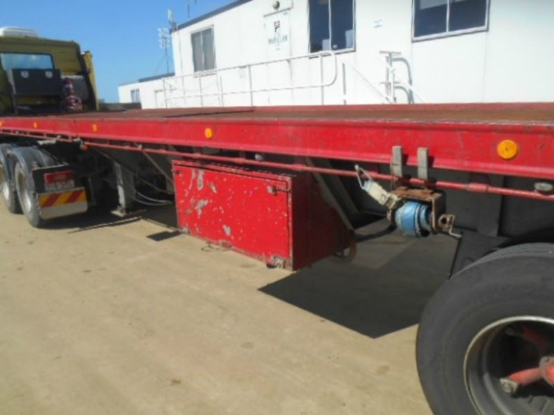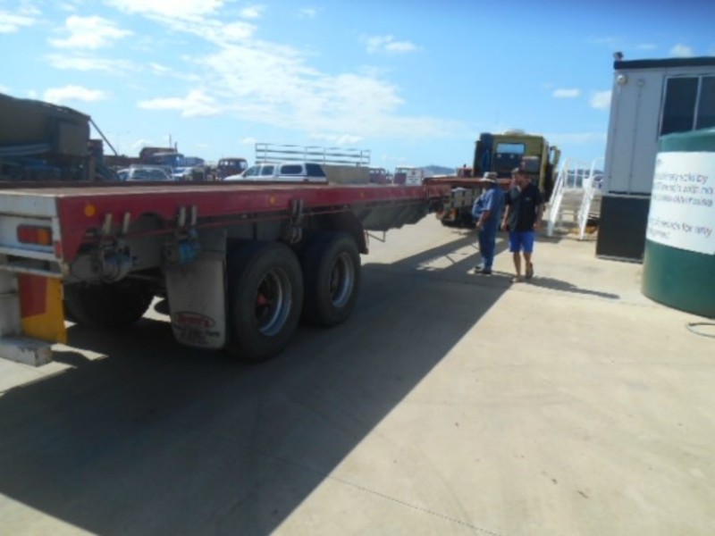Circa 1980 Fruehauf flat top extendable. Bogie axle, spring suspension. 35' to 55'. Slides in and out perfect. In mint condition for its age. Vendor asking $12,000. Stock ref # C2199