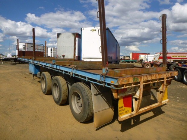 Stock Ref # C2698 - 1980 Model Haulmark 41FT 1" Flat Top Trailer. Bolsters, front headboard, spare wheel carrier. Tri-axle, spring suspension. Located at Western Traders Yard, Forest Hill, Qld. Inspection prior to purchase is highly recommended.