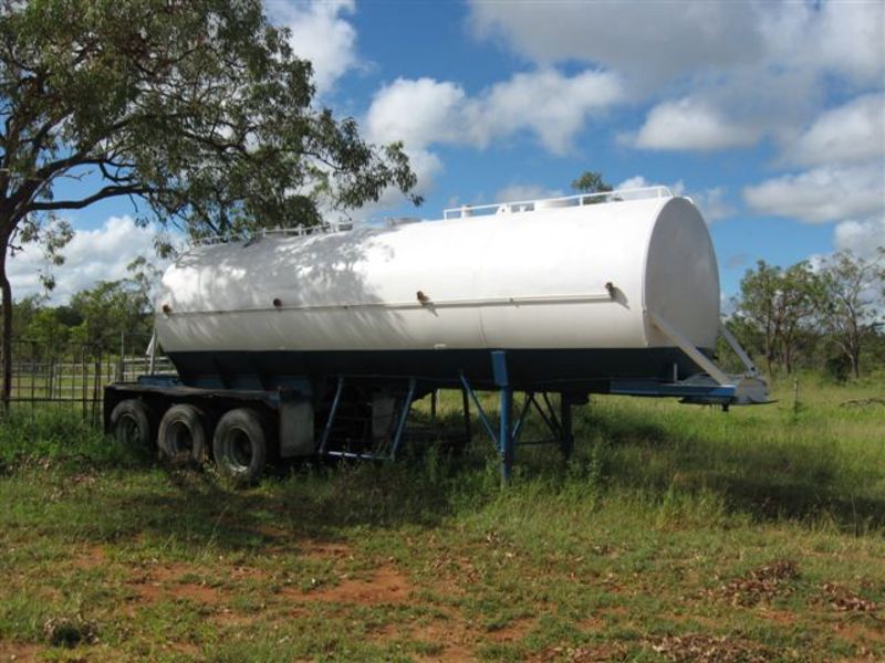 Rossco water tanker, ex cement tanker. 33,000 litres, steel, heavy duty, spray bars, pump,new brakes, ringfeeder. Located Charters Towers Ph 0428 747 846 $30,000