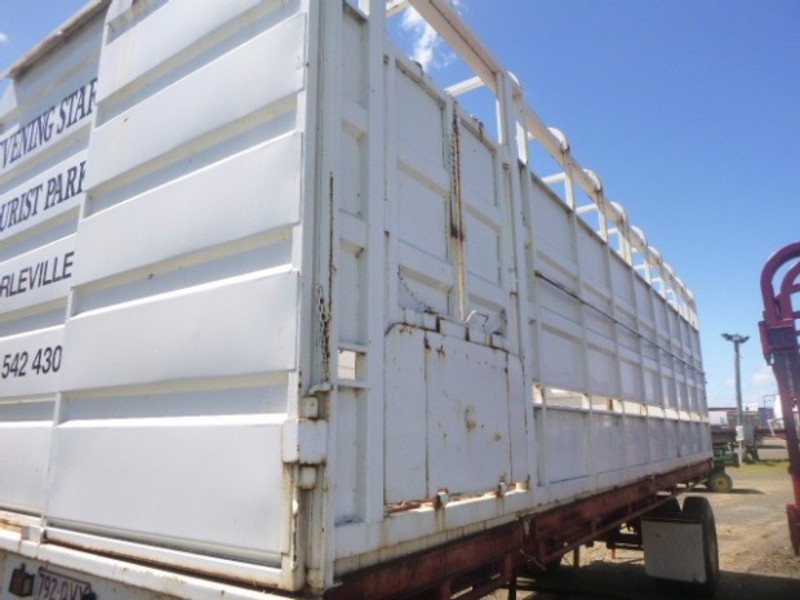 Coming up for online auction 20th November to 27th November 2017. 1981 Model Freighter Stock Crate Dog Trailer. 2 axle, spring suspension, ATM: 18T. 7.3m crate length, 1.3m bullbar length, 3.6m ground to top of crate height. Stock Ref# C2671. Located at Western Traders Yard, Forest Hill QLD. Inspection prior to purchase is highly recommended. See www.westerntraders87.com.au/auctions to register to bid. Need auction finance? Go to www.westerntraders87.com.au/finance If interested in purchase prior to Auction commencement, please contact us.