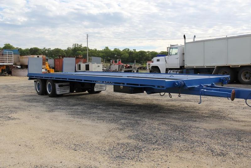 Freighter tilt slide tag trailer. Fully engineer complianced. New sandblast and paint. New tilt cylinders. Slide out drawbar with Bartlett ball and pintle hook drawbars. Airbag suspension. Currently registered. 8.6m long.