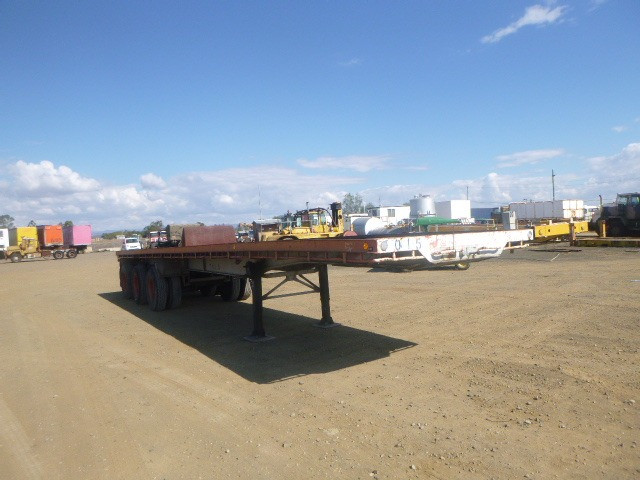 Stock ref # 3024, Haulmark, 3STOD, Tri Axle Flat Top Trailer, 40 ft, spring suspension, steel floor, red. heavy duty, very good, 10'1" spread. Vendor asking $12,000. Located at Western Traders Yard, Forest Hill QLD. Inspection prior to purchase is highly recommended.