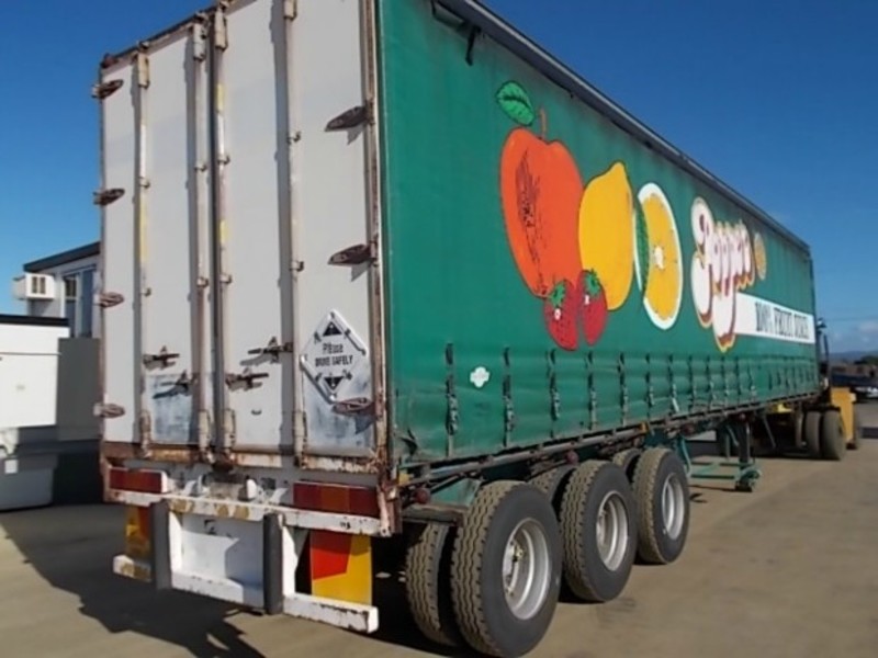 1981 Krueger tautliner. Tri-axle, spring suspension. Stock ref # 2592.