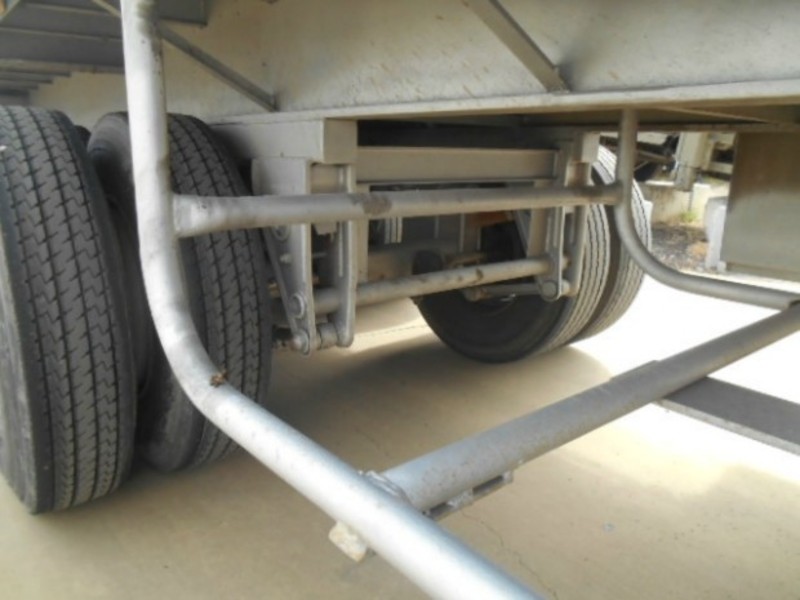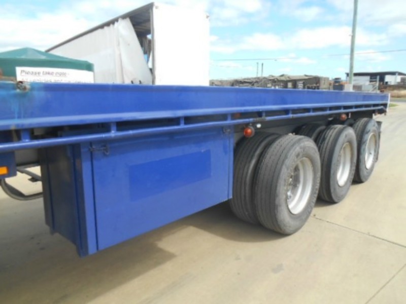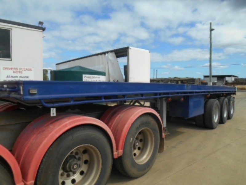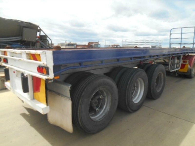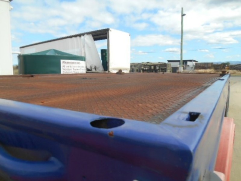 1983 Fruehauf flat top. 32ft. Tri-axle, spring suspension. Pins. $9,000. Exact Length 9.75m Stock ref # 2587