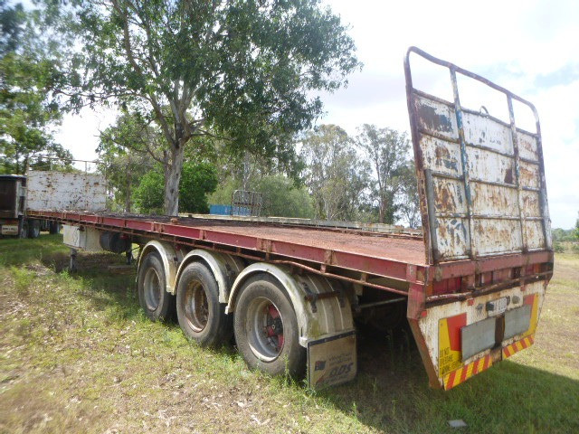 Stock Ref# OC957. 1984 Model Fruehauf Flat Top Trailer. Tri-axle, speing suspension, spare tyre rack, spider hubs, 3 way container pins, headboards. Needs new tyres, rocker boxes. 8'1" spread. Vendor asking $17,500. Located at Chambers Flats, QLD. Inspection prior to purchase is highly recommended.