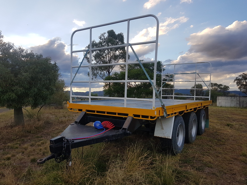 tri axel pig trailer in excellent condition with new wheel bearings, near new break linings, tyres (75%), heavy duty chassis, no rust , resprayed 20T capacityLength 6.4mt width 2.5mt tare weight 5120Kg