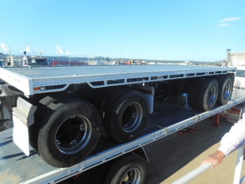 Maxitrans 1985 Dog Trailer. Quad-Axle, Airbag Suspension, 20'ft Container Pins, Dolly Loader. Vendor Asking $33,000. Stock Ref# 2595a