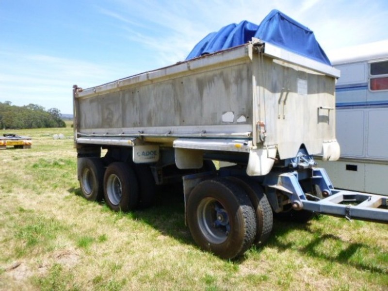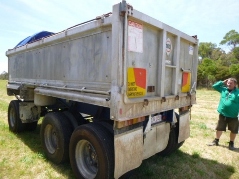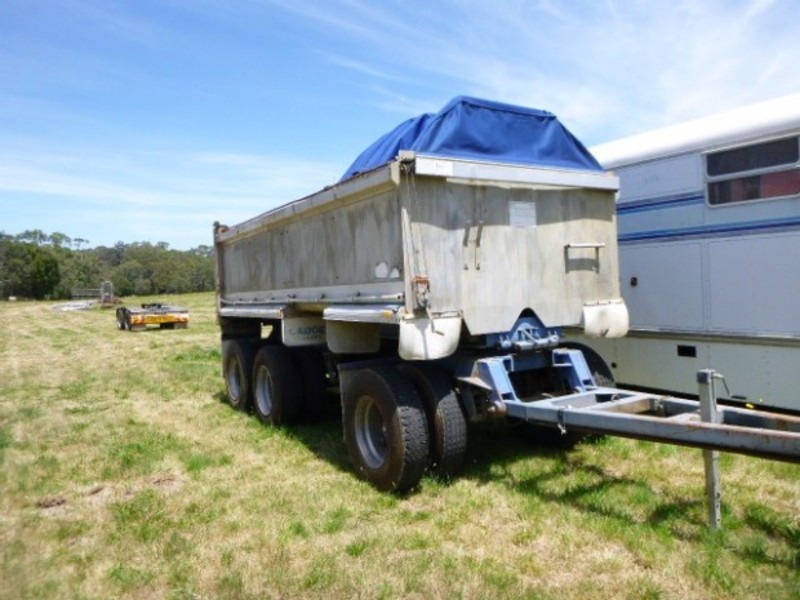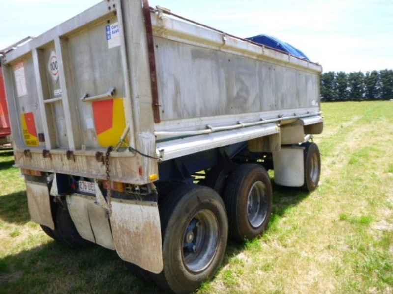 Stock Ref# OC582 - 06/1988 Model Hockney Super Dog Tipping Trailer. Spring suspension, tri-axle, alloy body, good tyres, dolly lock, timber inside for sides. 2.5m wide, 6m long. ATM: 25T. Stock Ref# OC582. POA. Located at Glenburn, VIC. Inspection prior to purchase is highly recommended. See www.westerntraders87.com.au/auctions to register to bid. Need auction finance? Go to www.westerntraders87.com.au/finance If interested in purchase prior to Auction commencement, please contact us.
