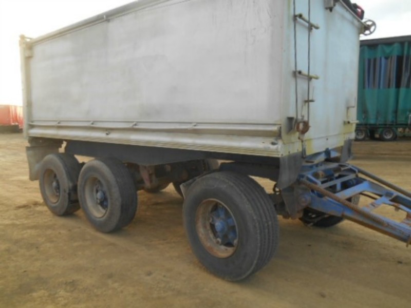 Three axle Super Dog Tipping Trailer. Dolly Locker. Alloy Bin on Super Single Tyres. Make - Morgan Evans. Year 1988. Vendor asking $8,000. Stock Reference Number C2007.