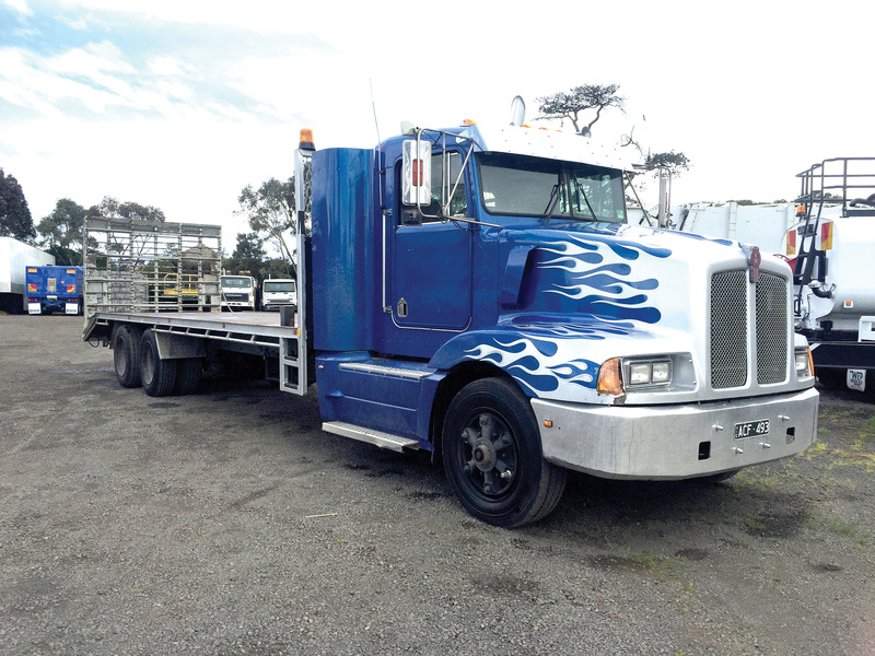 1989 T400 KENWORTH Fitted with 8,300mt beaver tail tray with Hyd. Ramps, L10 Cummins engine, R/R gearbox. SN#001.
