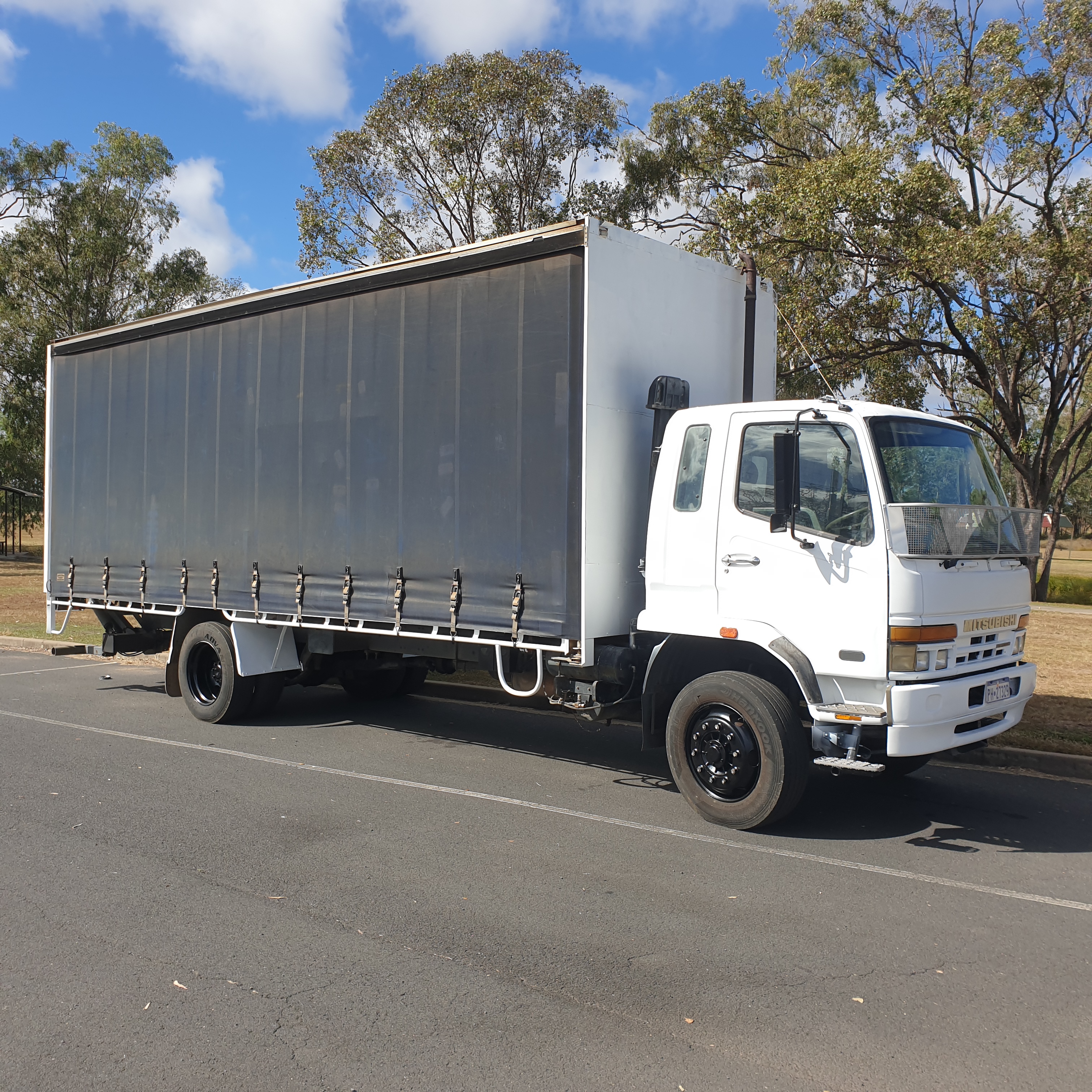 This has the 6D16 inter-cooled turbo six motor paired with the Mitsubishi 10-speed manual gearbox. The GVM 16000, GCM 25000 kg FM677 model features a tailgate lift, curtain sides, and gates. The tray is approximately 7.44 metres long. It is currently registered in Western Australia as a private registration. It is Factory air-conditioned, which works. Has rear-view cameras and a screen fitted in the cab. 06/1998 built and currently located in Millmerran, Queensland, 4357, for repainting. Feel free to bring your Mechanic to inspect before purchasing.