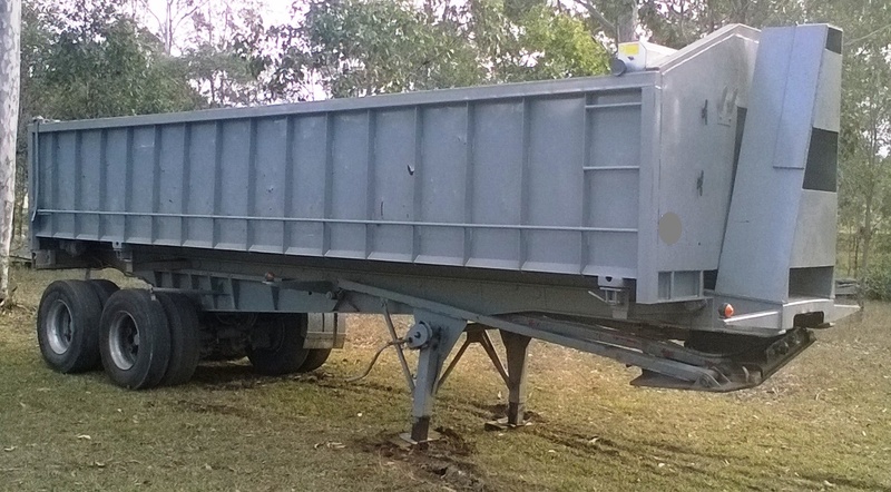 Steel ribbed tipper body removable on hydraulic bogie skel, damaged link arms to skid plate.