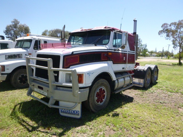 Stock Ref # OC889. 05/1994 Model International S-Line 3600 Prime Mover. 13 speed road ranger, N14 Cummins. 6x4. Jost hitch type. GVM: 24,000kg. GCM: 45,000kg. Bulbar, LED lights, maxi-brakes, airbag suspension, spider hubs. Diffs: 4.33. Located in Tara, Qld.
