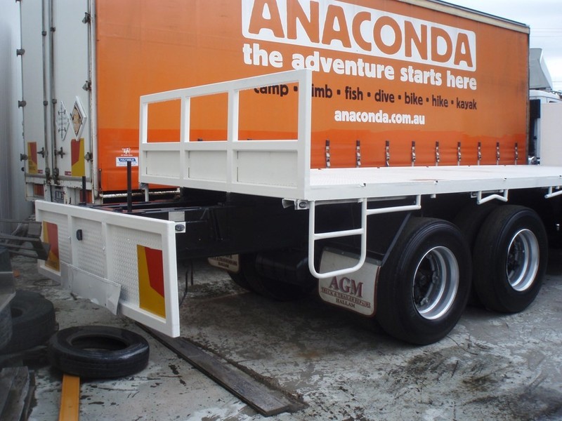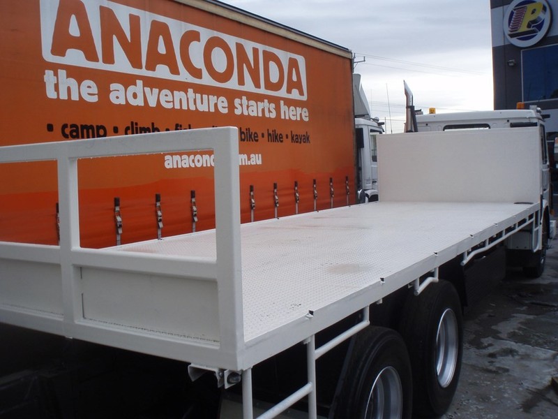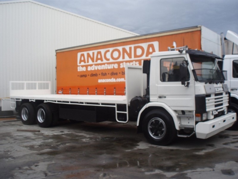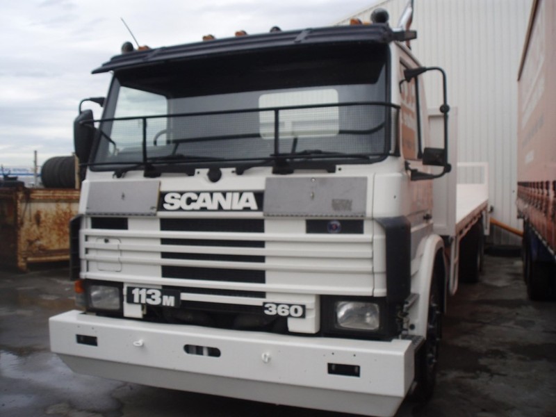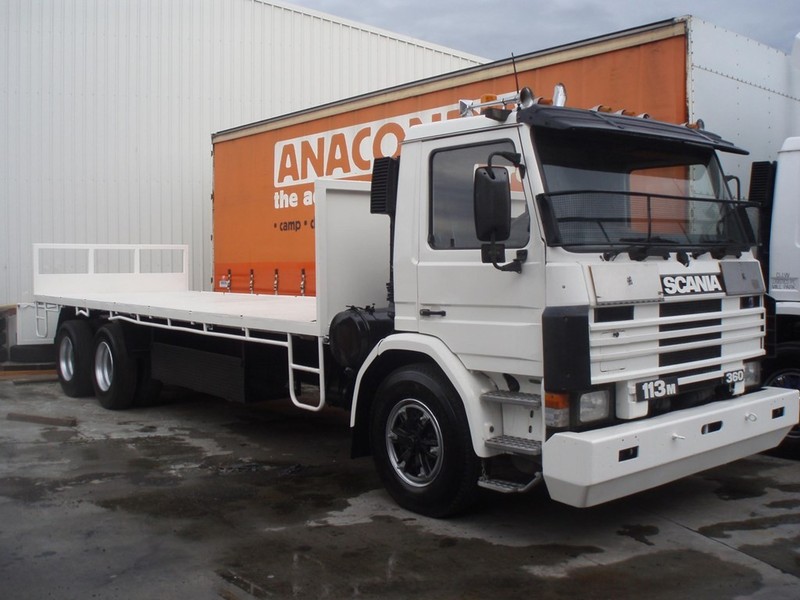 1995 SCANIA P113M 6X4 360 HP 9 SPEED GEARBOX ON SPRING 6 ROD SUSPENSION. TRUCK DID HAVE CRANE ON IT BUT WAS TAKEN OFF . 7.4 METERS OF TRAY NOW PLUS 1METER WHERE CRANE WAS.SO COULD BE EXTENDED TO MAKE 8.4 METER TRAY.or we can make into a beaver tail with hydrollic ramps for 7 k extra and its a bogie drive with twist locks .