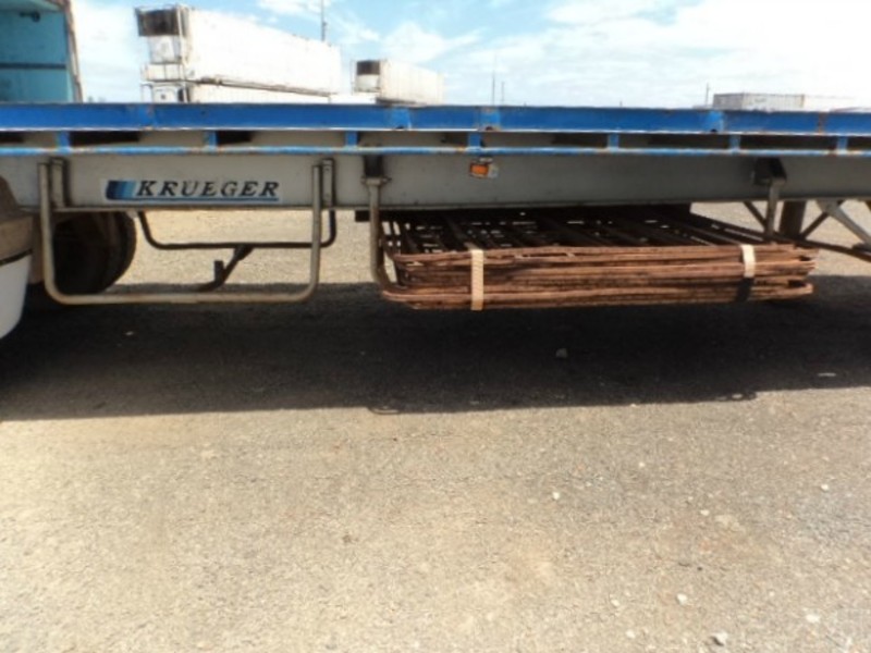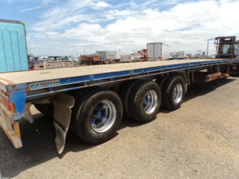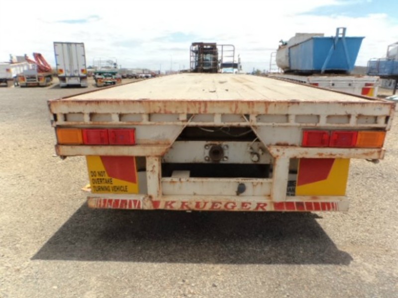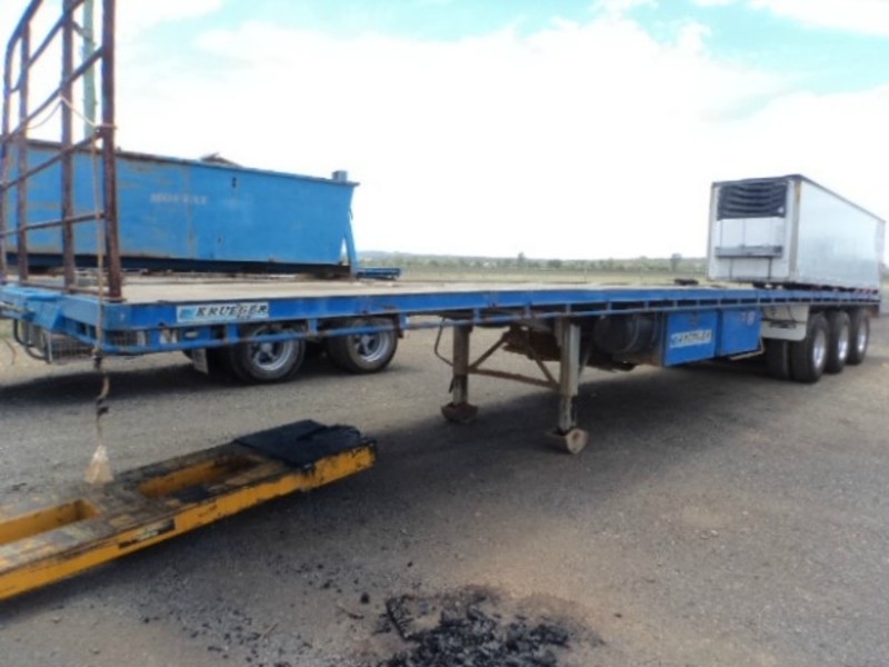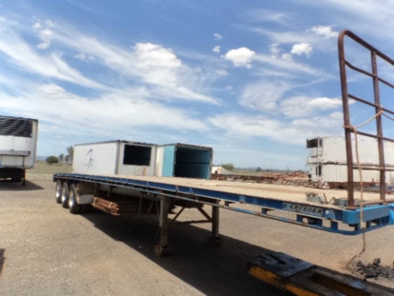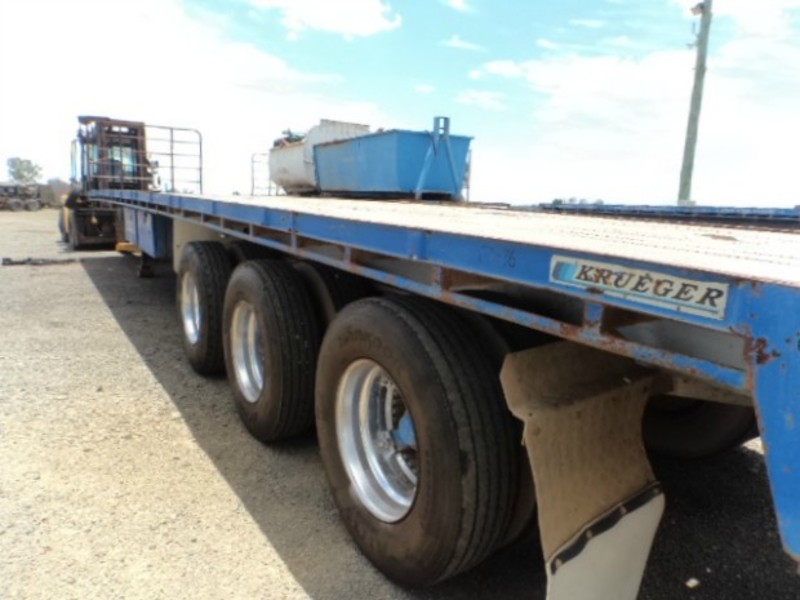 Coming up for auction. 1996 Krueger 45ft flat top. (13.73M) Tri-axle, airbag suspension. Aluminium floor, ringfeeder bracket. Stock ref # 2734. Located at Western Traders yard Gatton. See www.westerntraders.com.au/auctions for details.