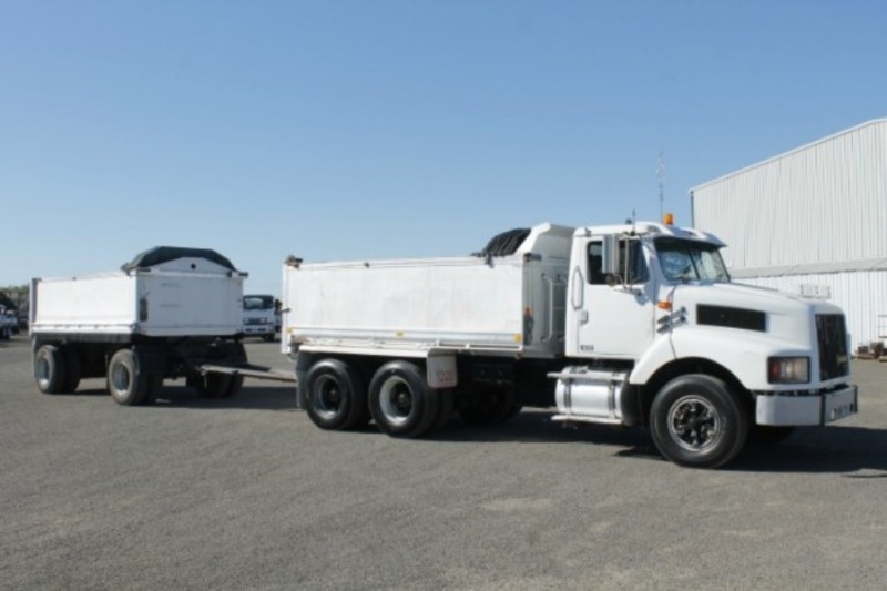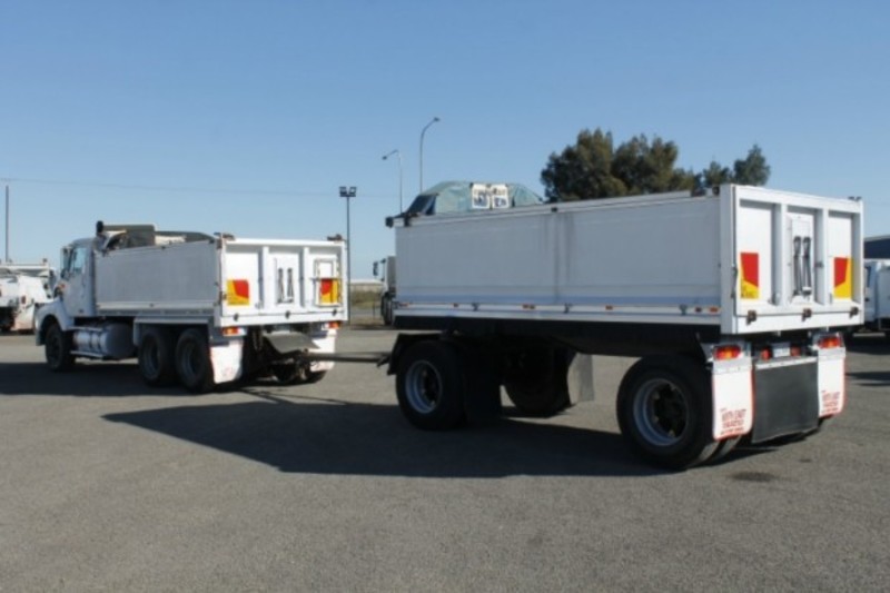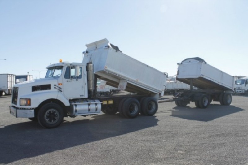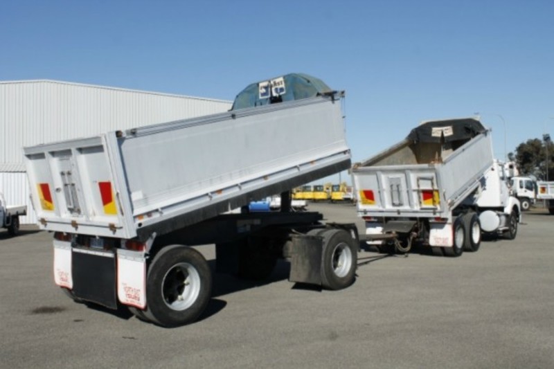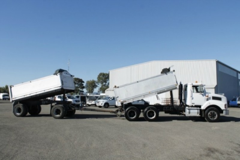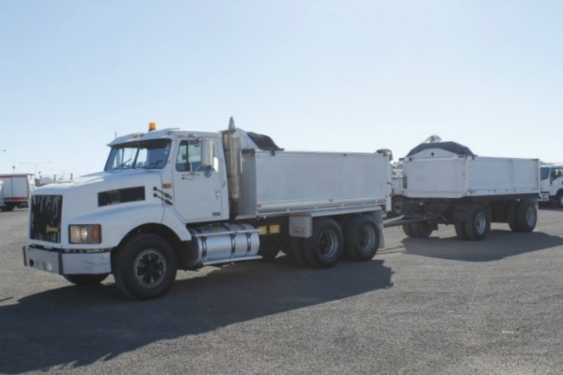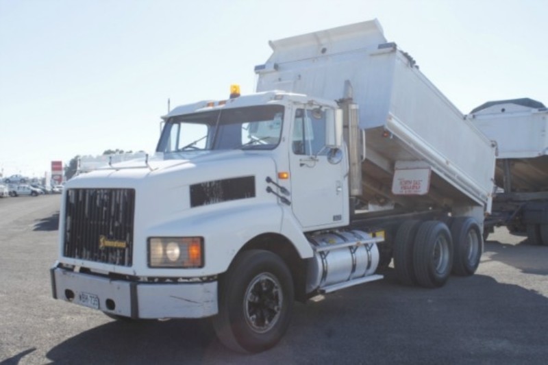 1997 INTERNATIONAL S-LINE 3600 FITTED WITH A 4.2M TIPPER WITH 4.5M ALUMINIUM DOG TRAILER, 1.1M HIGH SIDES, WIND OUT TARPS, HENDRICKSON AIR BAG SUSPENSION & DUMP VALVE, GRAIN LOCKS, GRAIN CHUTES, ALLOY FUEL/HYDRAULIC TANKS, 11R22.5 SPIDER RIMS, AIR/CONDITIONING, CRUISE CONTROL, POWER STEERING, POWER DIVIDER, CUMMINS M11-350E, 13 SPEED EATON, 4.5METRE 18t ATM HERCULES ALUMINIUM DOG, AIRBAGS SUSPENSION, 659,645KM'S