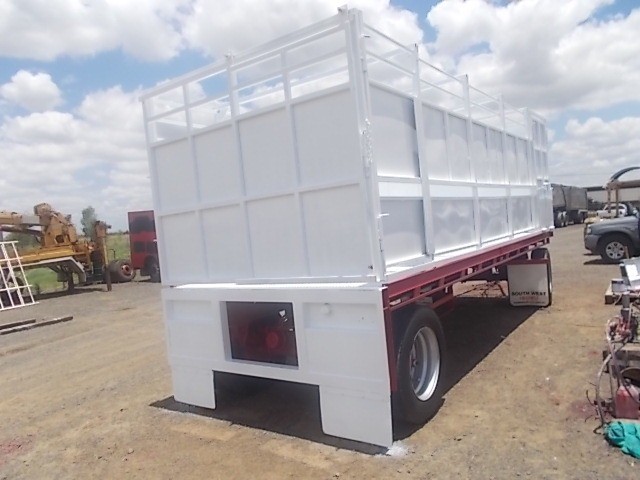 Stock Ref #2830ir - 10/1998 Model GTE Tandem Axle Dog Trailer with Stock Crate. Side load, newly painted. 20FT 10" long, 2.2m pull. 16 Tonne ATM. 5 stud spider rims, spare wheel carrier, leafspring suspension. Vendor asking $25,000. Located at Western Traders yard, Forest Hill QLD. Inspection prior to purchase is highly recommended.