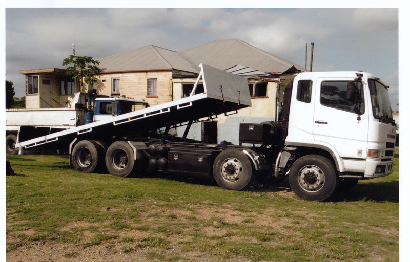 (Tilt only) approx. 7 mtrs long tray, hyd winch, tool boxes etc, 6 cyl, 13 speed RR, Mitsubishi tandem drive diffs, this truck is ready to go to work, very tidy truck. #02938