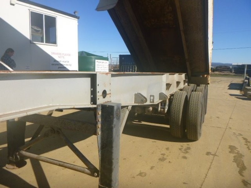 11/1999 Model Custom Made Chassis Tipping trailer. Tri-axle, spring suspension, 2 way tailgate, spider hubs. Vendor asking $28,000. Stock Ref C2589. Located at Western Traders Yard, Forest Hill, Qld.