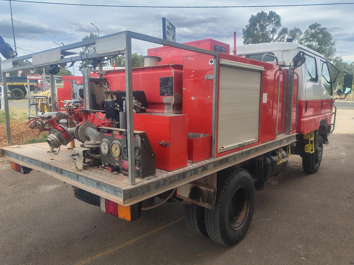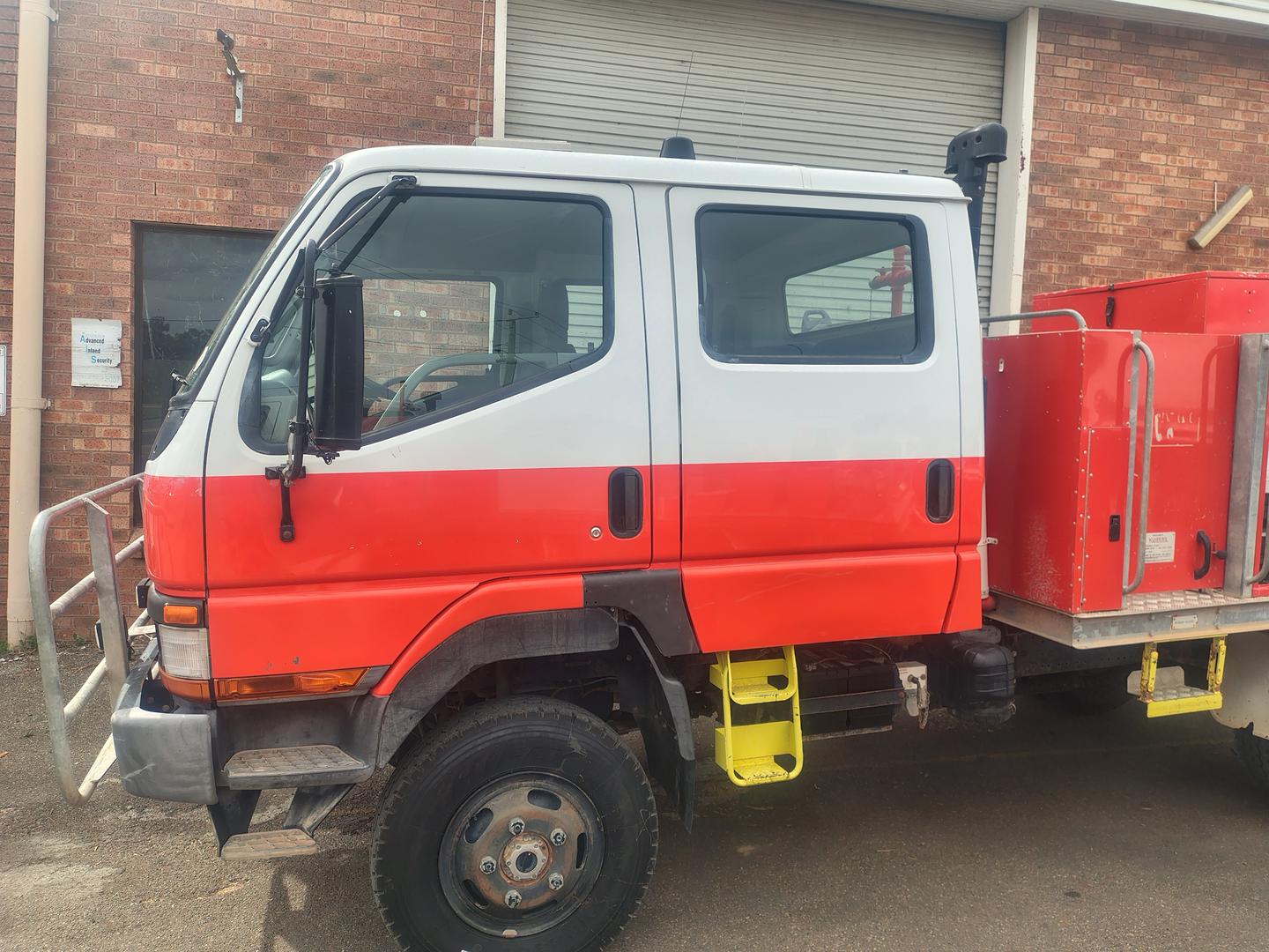 1999 Mitsubishi Canter 500/600 4x4 Crew Cab FireTruck, direct from government, fully equipped fire truck, galvanished water tank, diesel pump with Gaam pump set with foam and crew protection. Air conditioned, currently six seats with a 7th seat available. Also available as a tray top truck.