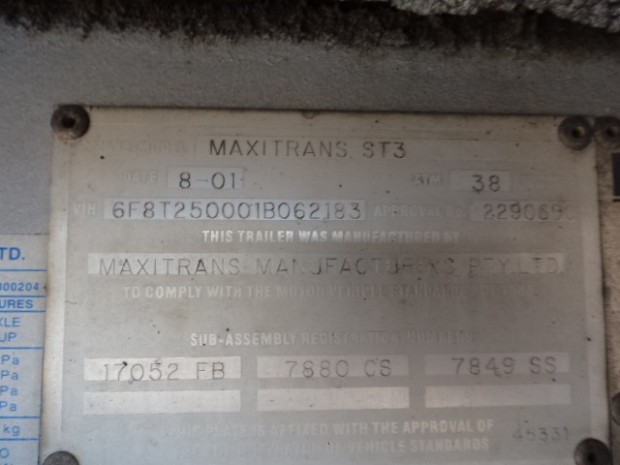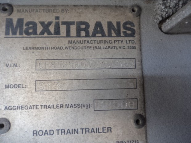 Maxitrans A trailer (only): A Trailer: 08/2001 Maxitrans. 7.5m deck 24'7". Full set of gates. Carrier Fridge motor, Insulated deck. 10 Stud Alcoas, Bolt in Pin. Stock Ref# C2426. Vendor asking $33,000. Located at Western Traders Yard, Forest Hill Qld. Inspection prior to purchase is highly recommended.