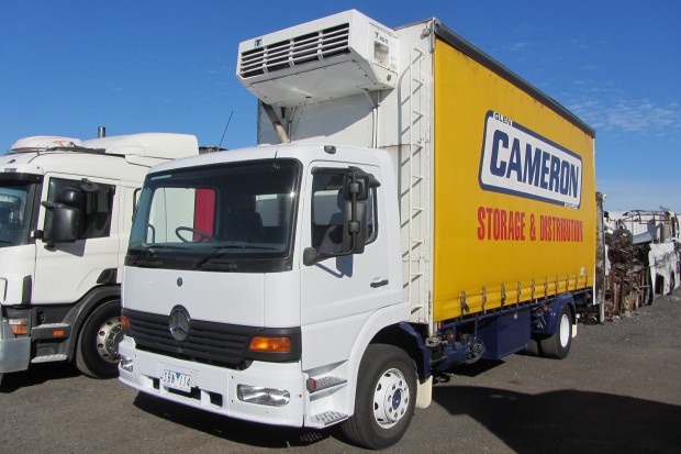 2002 Mercedes Benz Atego 1623 4x2, 6 speed gearbox on air bag suspension fitted with 10 pallet refrigerated curtain sider,rear doors, Thermoking KD11 max fridge unit. Tidy truck, will come with new paint and curtains.