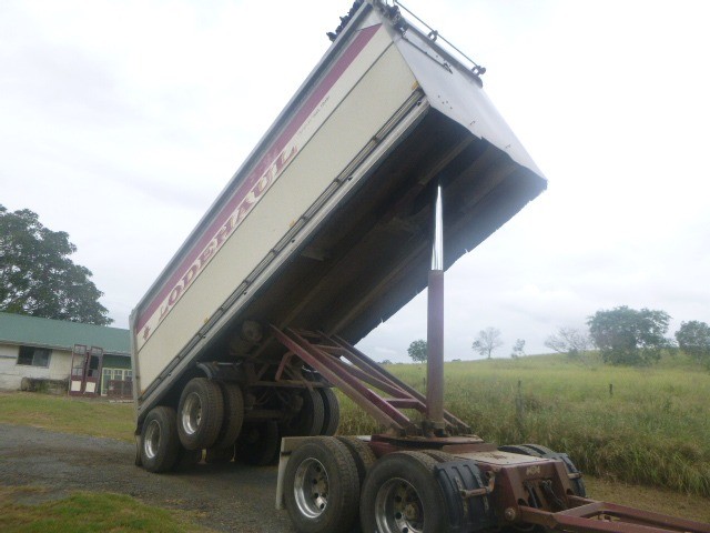 Stock Ref # OC928. 04/2002 Model Tefco TOA Tipping Trailer. 24FT (7.3m). 6FT 10 sides (2.08m) with lip. 2.75m drawbar. Bogie axle, Airbag suspension. ATM: 33,000kg. TARE: 6480kg. Tyre size: 11R22.5's. Hendrickson suspension. Electric tarp. All brakes done (drums, s-cams, bushes, liners) approximately 50,000kms ago. Vendor asking $22,000. Inspection prior to purchase is highly recommended.