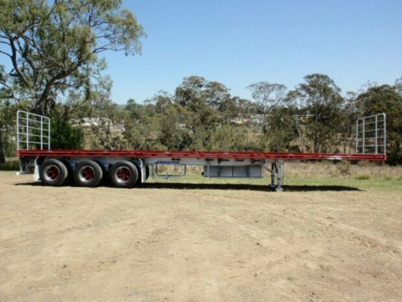 2003 FREIGHTER MAXITRANS. 22 pallet – Hendrickson air-bag suspension – 2x jumbo tool boxes – water tank – tyre and gate rack – chrome rims – spider hubs – Road train bracket. Very tidy trailer with new paint & scroll, straight floor. RWC.