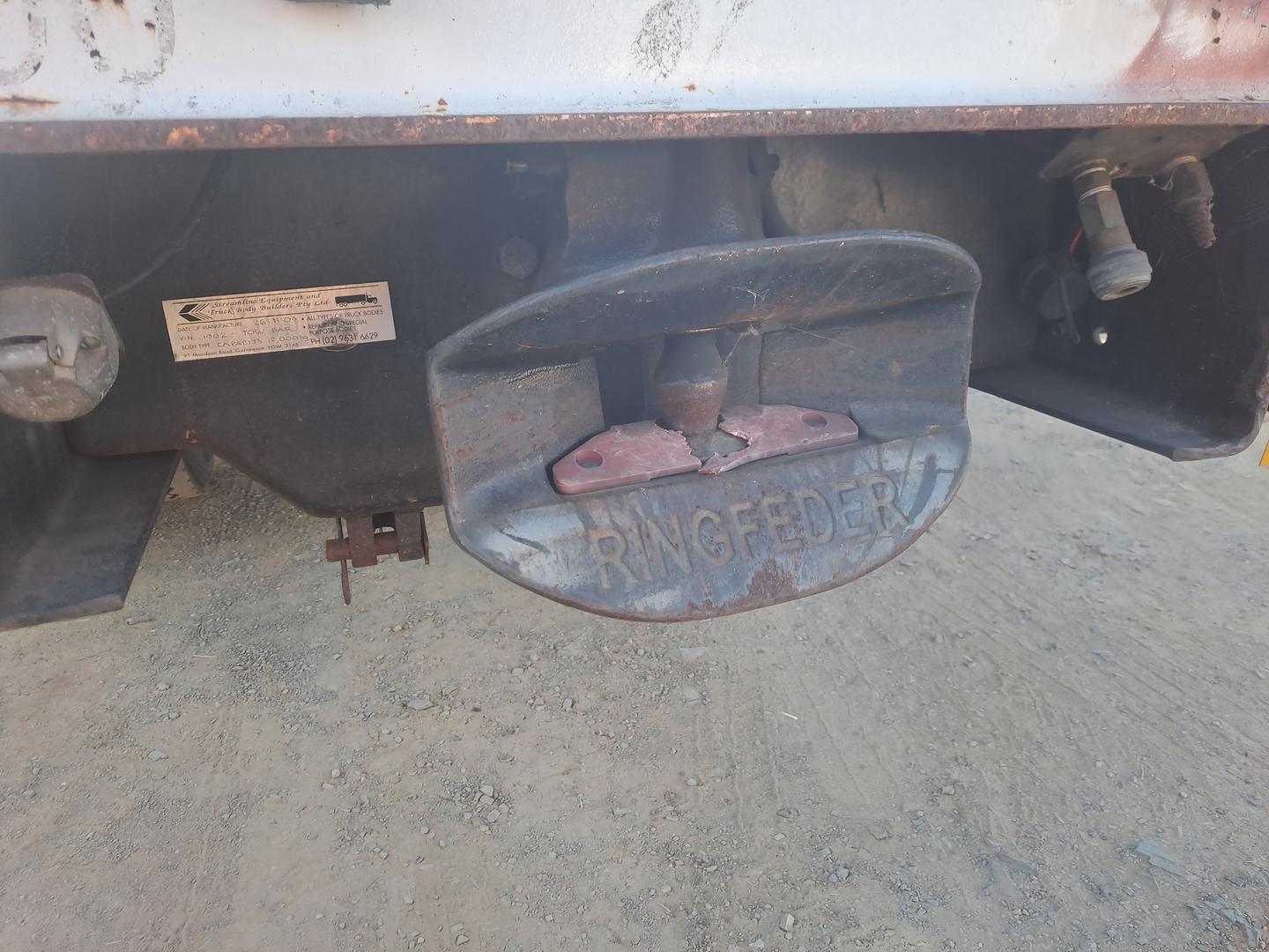 Mitsubishi Fighter Skel body with container pins, can be converted to a tray, 270 hp, 9 speed Eaton Syncro, ring feeder hitch, nose cone, 23 ft tray, ex-removal truck, fleet maintained.