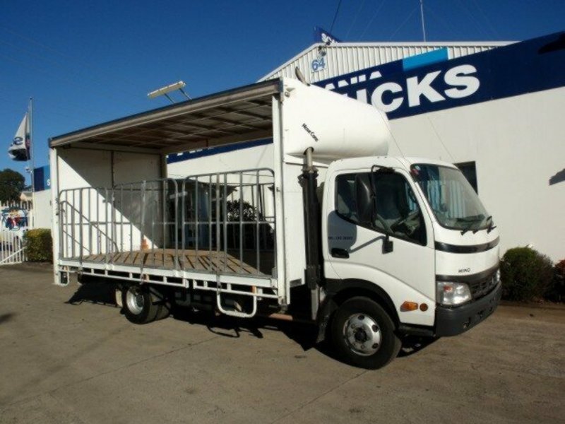 2006 HINO DUTRO U424. 16ft Tautliner body (8 pallets). New curtains will be fitted to your choice of colour. GVM 7500kg – Gates – ANTEO tuck away tail gate loader – Nose cone - 277560km. Top truck with QLD RWC.