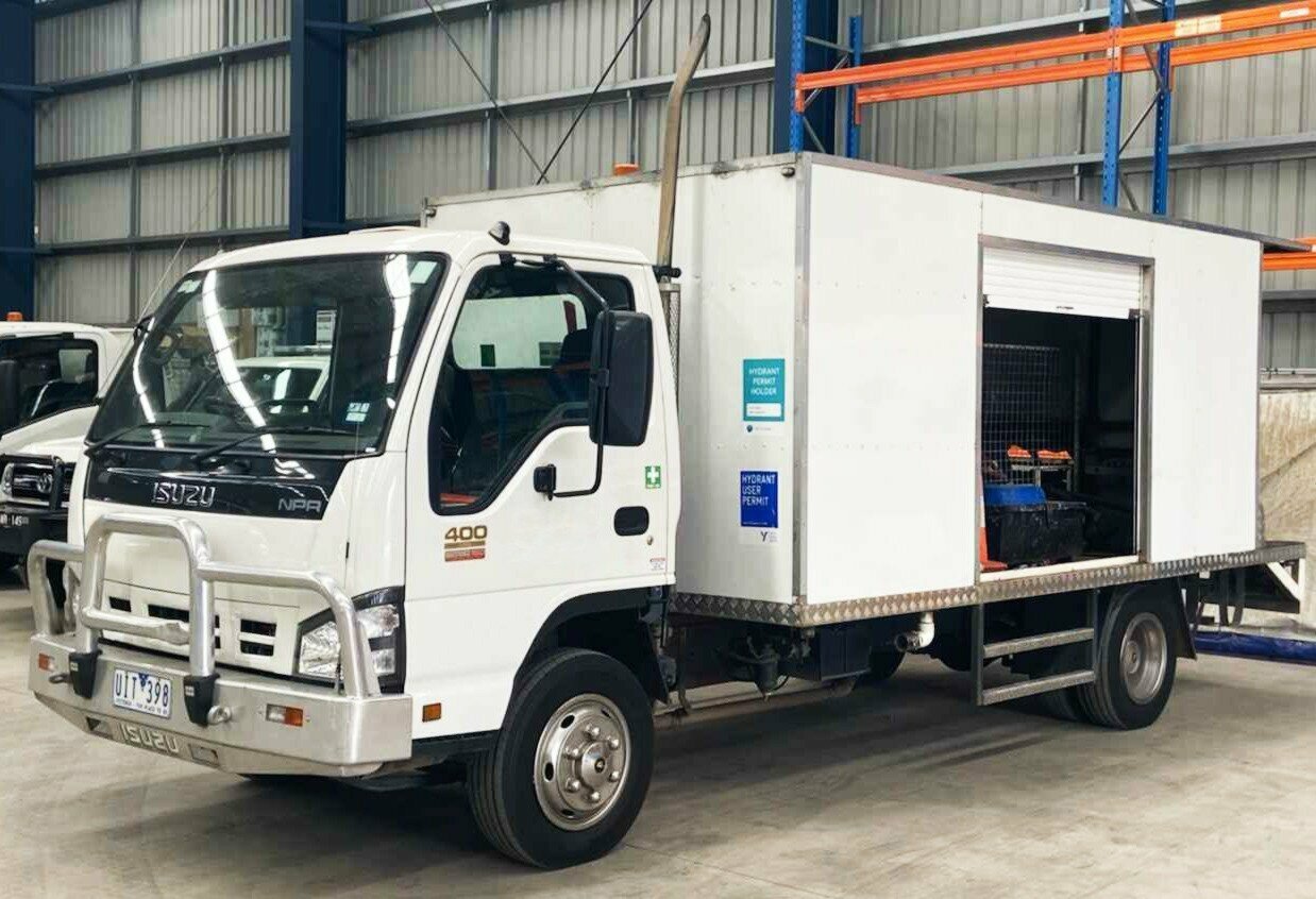 Drain cleaning Water jet truck. 2006 Isuzu NPR, 6 speed manual, 119,000 km, Fitted with a drain cleaning pump, stand alone Yanmar diesel engine, driving an Interpump W159, 2180 PSI @ 106 LPM, 1/2 `` & 3/4 `` drain cleaning hose on hydraulic reels, 2000 litre water capacity, Full range of drain cleaning fitting and attachments, Full service history