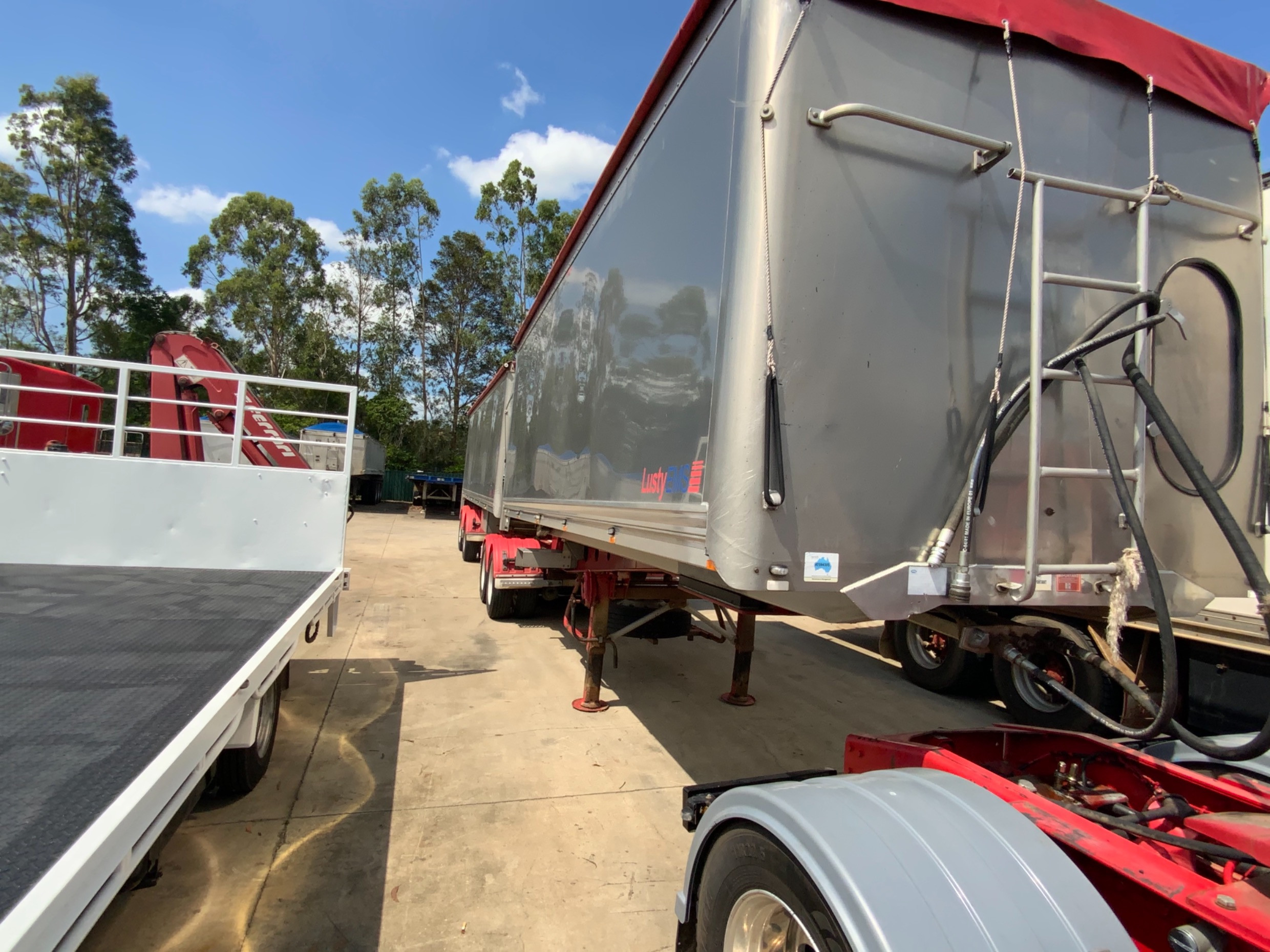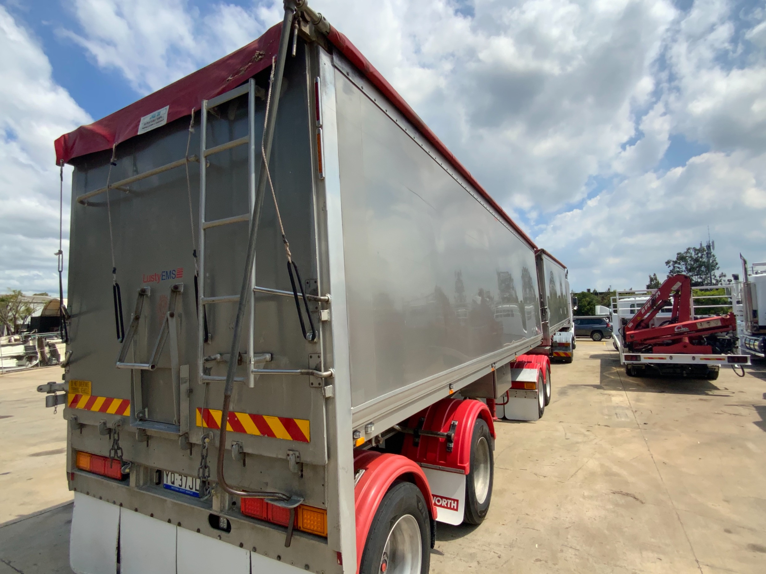 2006 GRAIN TRAILERS (LUSTY EMS) SOLD AS A PAIR, in Excellent Condition. Front trailer is a Chassis Tipper and Rear is a Tip over axle, Roll Over Tarps in good condition, Front access doors on each trailer, Roll Back Front Axel, 275/70R22.5 Tyres, dual spare wheel carriers on each trailer, SOLD WITH QLD COI and ready to register.