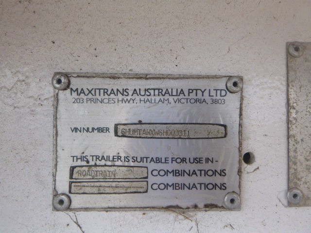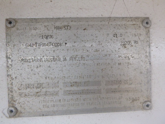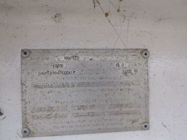 Stock Ref# C3051 - 10/2006 Maxitrans HXW Chassis Tipper Trailer. ATM: 41 Tonne; TARE: 6700 kgs; Tri-Axle; Airbag Suspension; LED Lights; Water Tank; Spare Tyre Rack; Spare Tyre; Spider Hubs; Maxi Brakes; Bisloy Body; All new rubbers/bushes/brakes/bearings. Bin Length: 9.0 mtr; Bin Height: 1.5mtr; Bin Width: 2.5mtr. Vendor asking $45,000. Located at Western Traders Yard, Forest Hill QLD. Inspection prior to purchase is highly recommended.