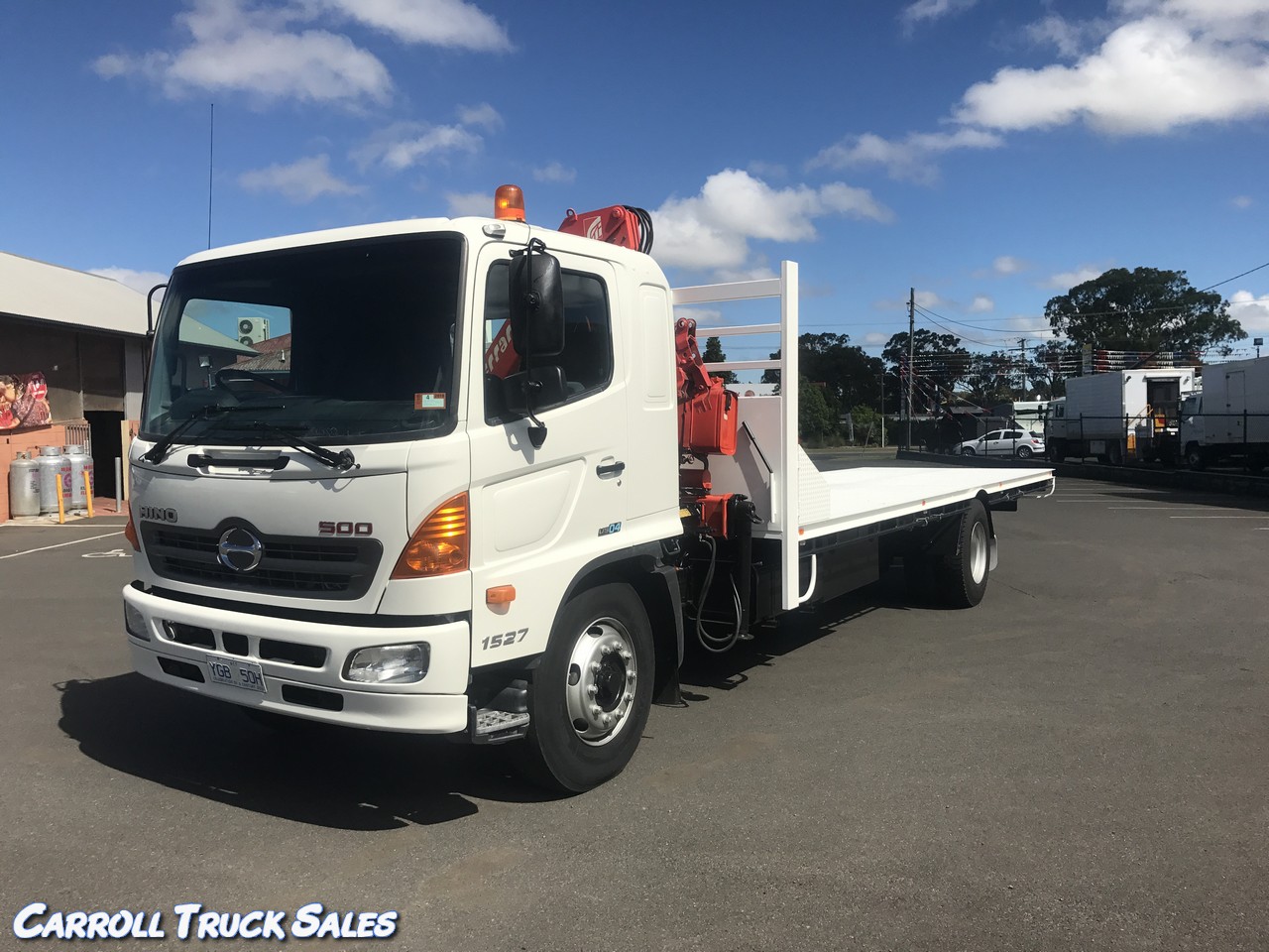 270hp turbo intercooled, 6 speed manual, P/S, A/C. Fitted 8m steel tray with under body tool boxes and storage cage, Ferrari 708 A2 Hiab crane. GVM: 15100kgs. GCM: 24000kgs. #0459