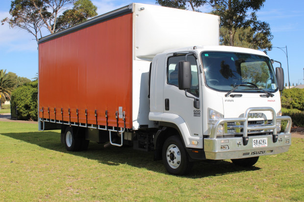 2008 Isuzu FRR 600 6.15m X 2.4m X 2.5m 10 Pallet Taut Liner With Insulated Curtains, Access Steps, Underbody Toolbox, Bull Bar, Reverse Camera, Air Conditioning, Over Head Storage, Cd Stereo, Heated Mirrors, Cruise Control, AMT Transmission, Power Windows, Travelled 122,848 Kms