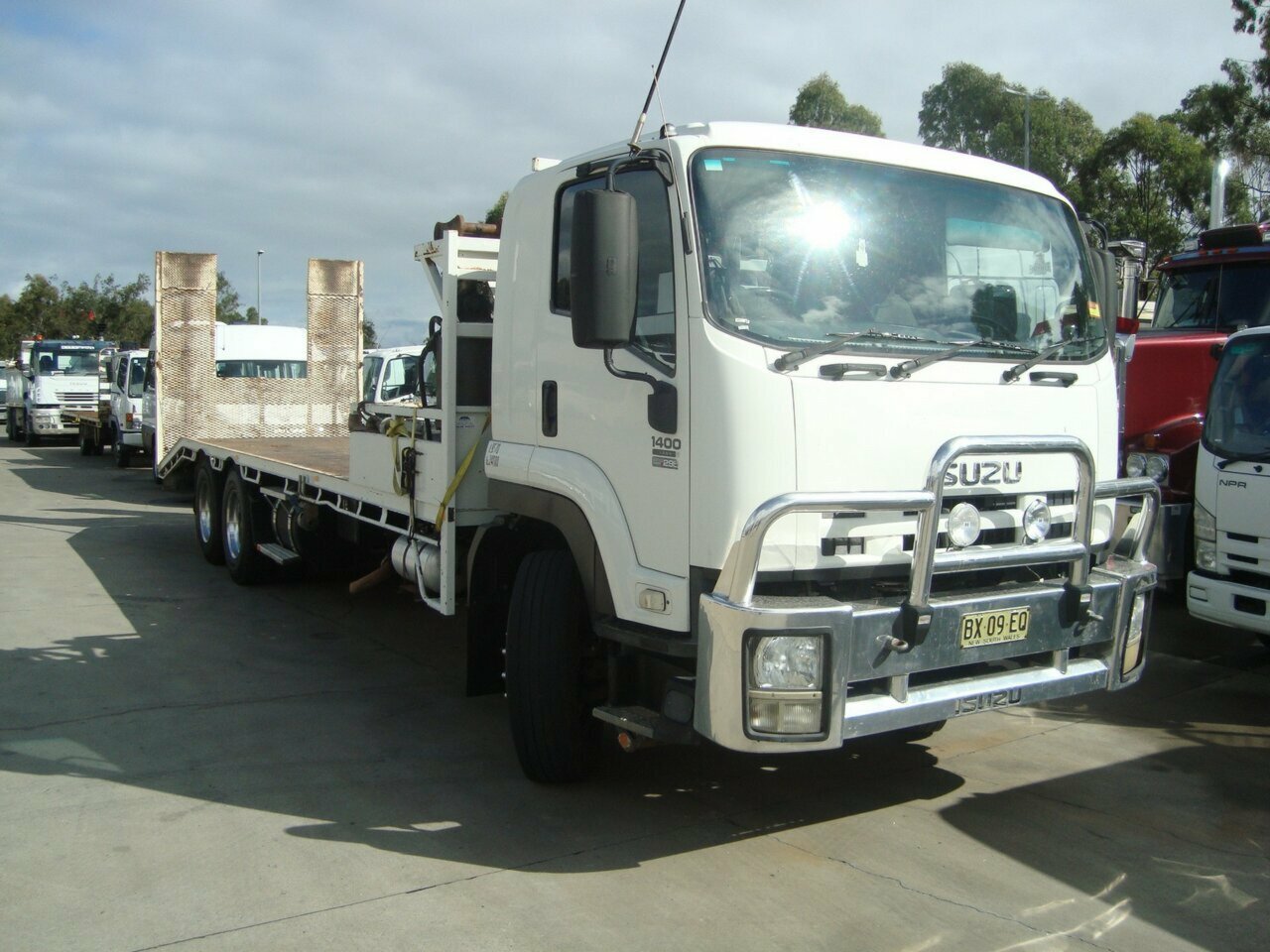 2008 Isuzu FVL 1400 Long Beavertail, 6 x 2, 7 m flat section, 1.5 m ramp, Hydraulic Ramps, 3 x Winches, Toolbox, Refuelling system, Bullbar, UHF Radio, Alcoa rims,