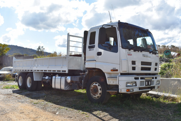 Ex-Govt, Tandem Axle Flat Top Tipper, Brand new Tipping body with drop sides and two way Tailgate.Sitec Series II, 6 Cyl Turbo Diesel, Airbags with Suspension Dump, Ringfeeder with Air and Rear Hydraulics, Tool Box, 21ft Tray