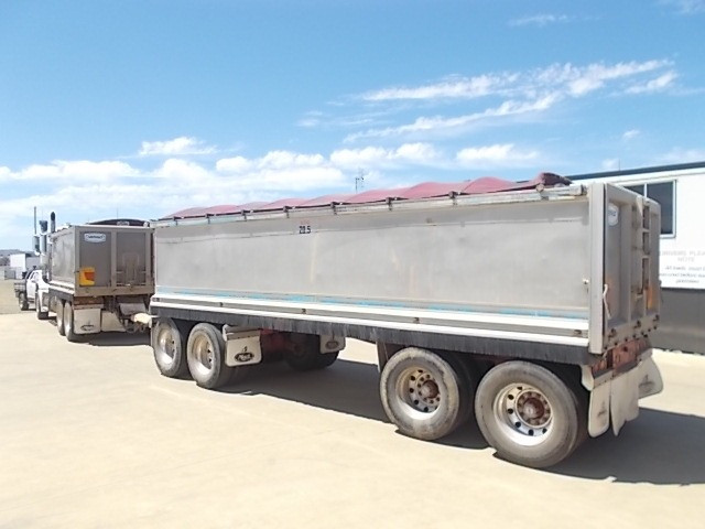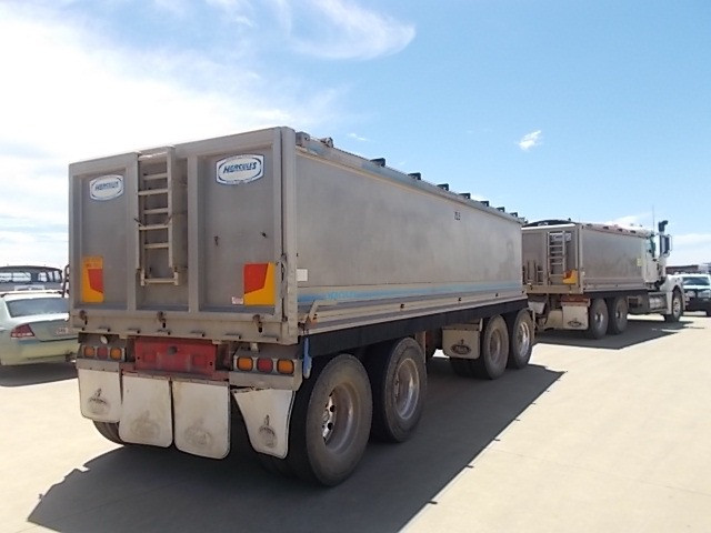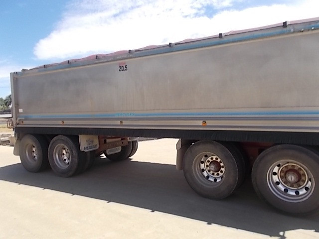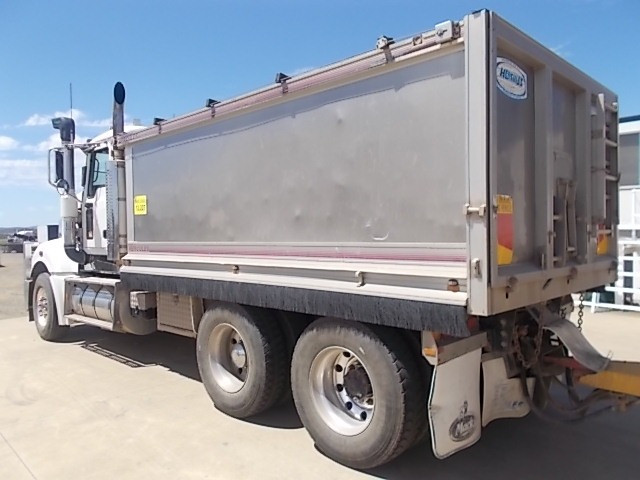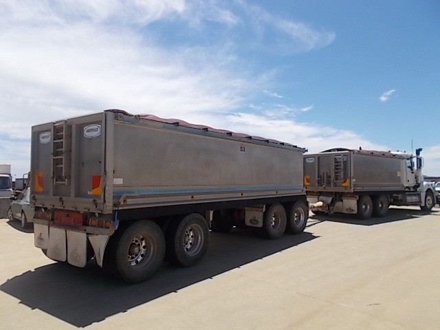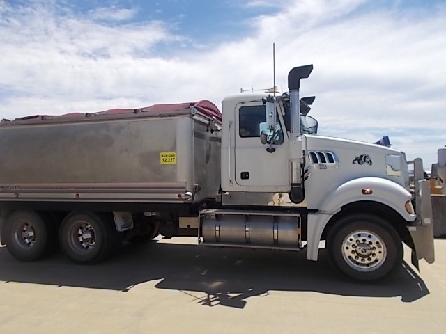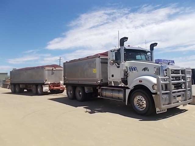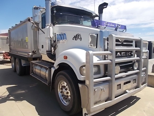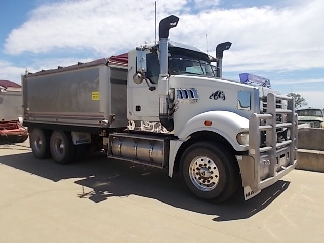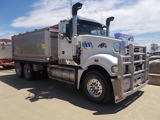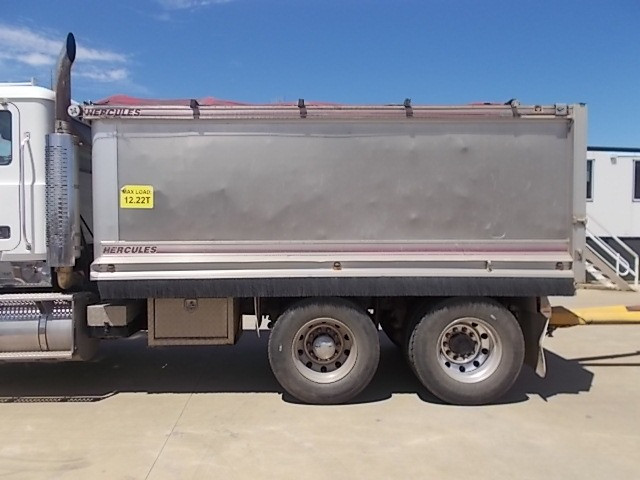 Stock Ref # C3017 and C3018 . 08/2008 Model Mack Trident Tipping Truck and Quad Tipping Dog SOLD AS SET - Stock C3017 - 08/2008 Model Mack Trident Tipp Truck. 18 speed, MP8 500HP, ODO Reading: 693,864kms showing. 50mm hitch type. GVM: 24,500kg, GCM: 70,000kg. Body height: 1.2m. Tyre size: 11R22.5's. Tyre percentage: 40%. Aluminium, ring feeder, aircon, road train plated, bulbar, LED lights, maxi-brakes, grain chute, hydraulics, beacon light, airbag suspension, electric tarp, 10 stud. new head, new clutch, new radiator, new turbo. Has had fuel pump work, very well serviced. Sold with quad dog as set. Stock C3018 - 06/2008 Model Hercules Quad Tipping Dog Trailer. Body length: 7.4m. Body height: 1.2m. Aluminium, LED lights, maxi-brakes, electric tarp, airbag suspension, 10 stud, dolly locker. Light rock sheeting on side wall. Will RWC. Vendor asking $90,000. Located at Western Traders Yard, Forest Hill, Qld. Inspection prior to purchase is highly recommended.