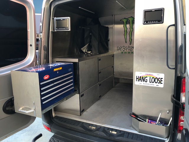 Ultimate vehicle for any motorsport. Has full professional stainless steel workshop in rear with ample shelf space. 3 seater luxury lounge that recline back and fully lined. Premium sound system. Small screen in drivers cabin and large screen TV/DVD in rear lounge. Two rear screens in workshop area. 240V converter with power point in rear lounge. Electric braking system installed. Wiring and brackets for Engle fridge. All decals can be removed. Registration plates do not come with vehicle but it will be registered with other plates. (Please note fridge, tools and tool box not included in sale)