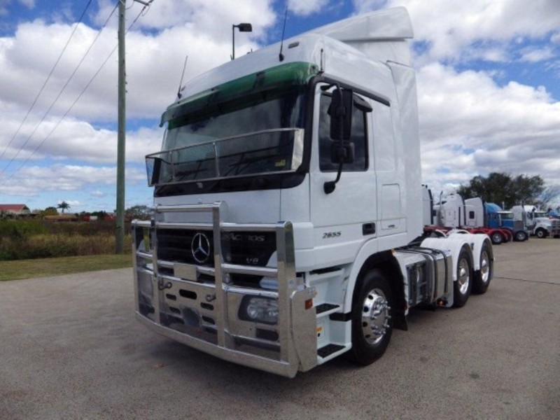 ACTROS 2655, 550 HP, 16 SPEED POWER-SHIFT AUTO TRANSMISSION, MERCEDES HEAVY DUTY DIFFS ON AIRBAG REAR SUSPENSION, X-LOCKS, ALLOY WHEELS, DUAL SQUARE ALLOY FUEL TANKS, BULLBAR, ABS DISC BRAKES,INTEGRATED HIGH ROOF DOUBLE BUNK SLEEPER CAB, MERCEDES BENZ SAFETY PACK INCLUDING ACTIVE BRAKING AND LANE ASSIST, AN IMMACULATE WELL MAINTAINED CLEAN AND TIDY PRIME MOVER WITH ONLY 615,000 KMS.