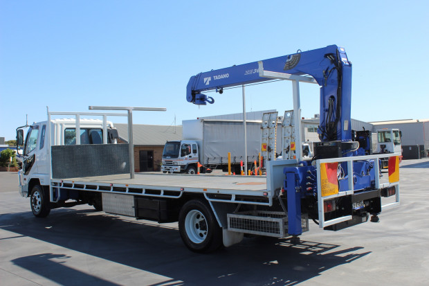 2009 Mitsubishi Fighter Traytop Fitted with a 2019 Tadano Cargo ZE363HRS Series Telescopic Boom Crane (Maximum Load 3030kg @ 2.6metres, Extends to [email protected] Metres). Radio Remote Operated Crane, Automatic Stowing Boom and Hook, Outriggers, Work Height Limiter, 6.44metre Steel Tray with Underbody Load Binder Tracks, Access Steps, Tie Rails, Alloy Bull Bar, Spotlights, Underbody Storage Cages, Underbody Tool Box, Overhead Load Racks, Tow Bar, Air Trailer Brakes, Power Windows, CD Radio, UHF Radio, Cruise Control, Turbo Timer, Heated Mirrors, Air Conditioning, Nominal 5 Tonne Payload, 6 Cylinder Turbo Diesel, 6 Speed Manual. Travelled 297,632kms.