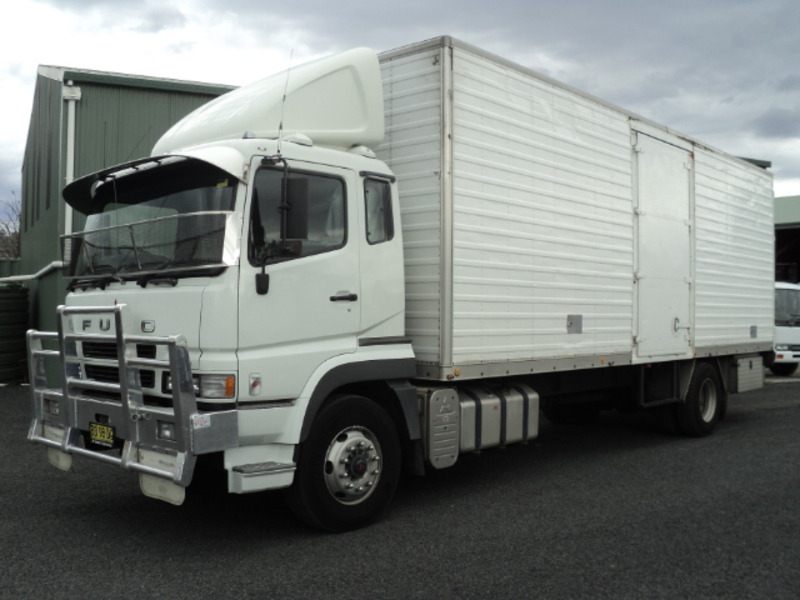 3/2009 MITSUBISHI FUSO FP500 4X2 PANTECH, big 420 hp turbo intercooled, 10 speed sincro Fuso gearbox, 612,500 kms(all long hwy kms) 16000 gvm, 40000 gcm, one local owner, 6.65m long wheel base, 8.44m long x 2.39m wide x 2.74m high (all inside measurements) pantech fitted with rear barndoors and walk board, side door fitted to pan, Ringfeder fitted, dual alloy tanks, alloy bull bar, nsw rego till 29/4/2015, airbag rear suspension, p/s, a/c, c/l, e/w, cruise control, ideal horse or car transporter. SN#1367