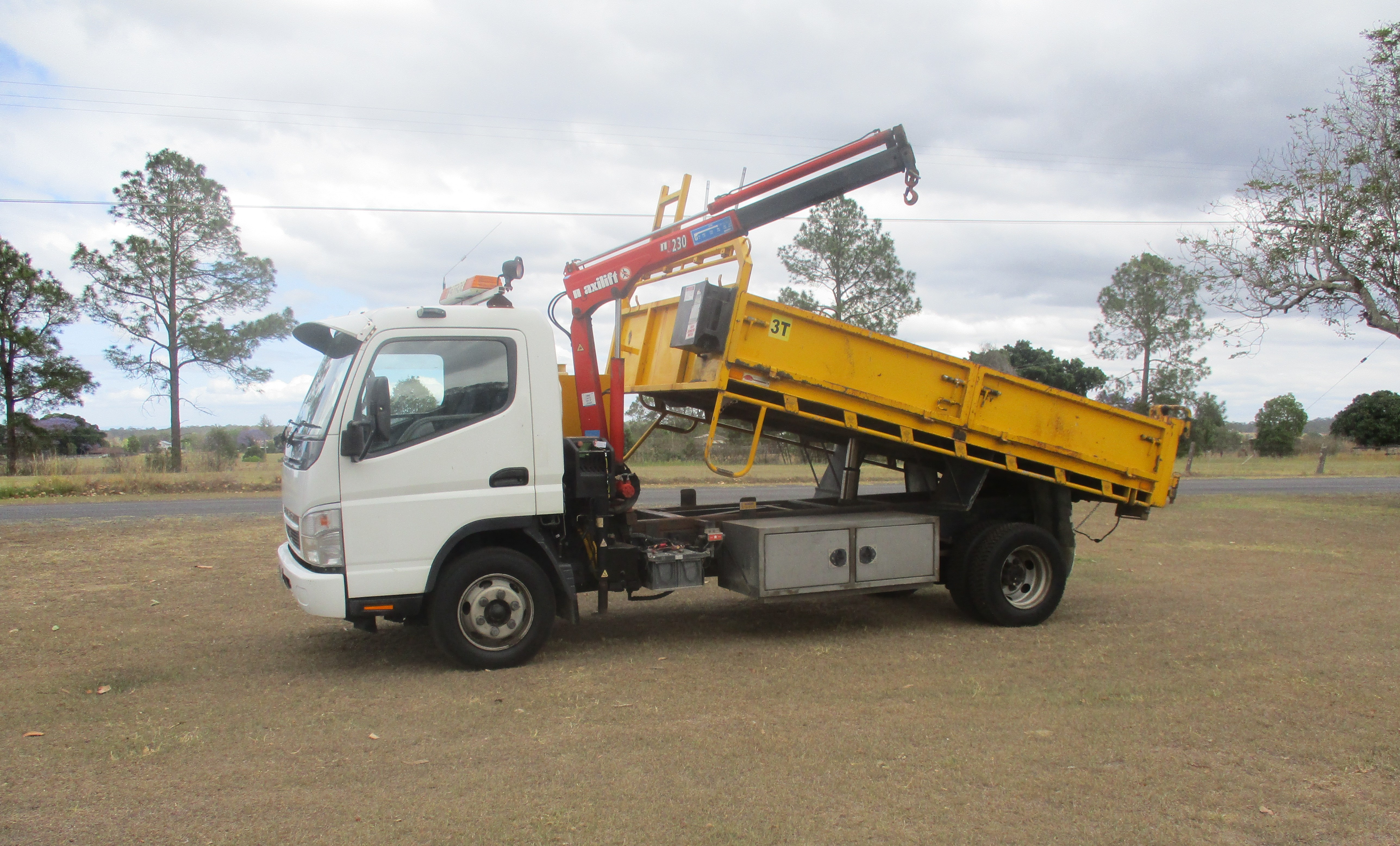 4.9Ltr Turbo Diesel 6 Speed Manual 4500 Tare 8000 GVM 1800kg Maxi-Lift Crane Heavy Duty Tipper Body 208K k's Towbar Electric Trailer Brakes Cold Air-condition 2 Way Radio Mitsubishi Reversing Camera Flashing Beacon Lights Toolbox's Good Tyres 2 Way Tailgate 10/2020 NSW Rego Ready For Work $27000 Grafton NSW