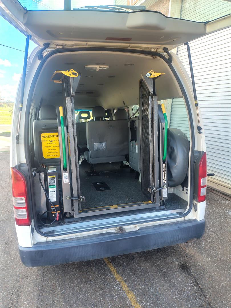 2009 Toyota Hiace Commuter wheel chair bus, 11 seats, ex corporate use, fitted with Braun corporation wheel chair lift, petrol automatic, very clean and tidy bus and will be sold workshop checked and ready for use.